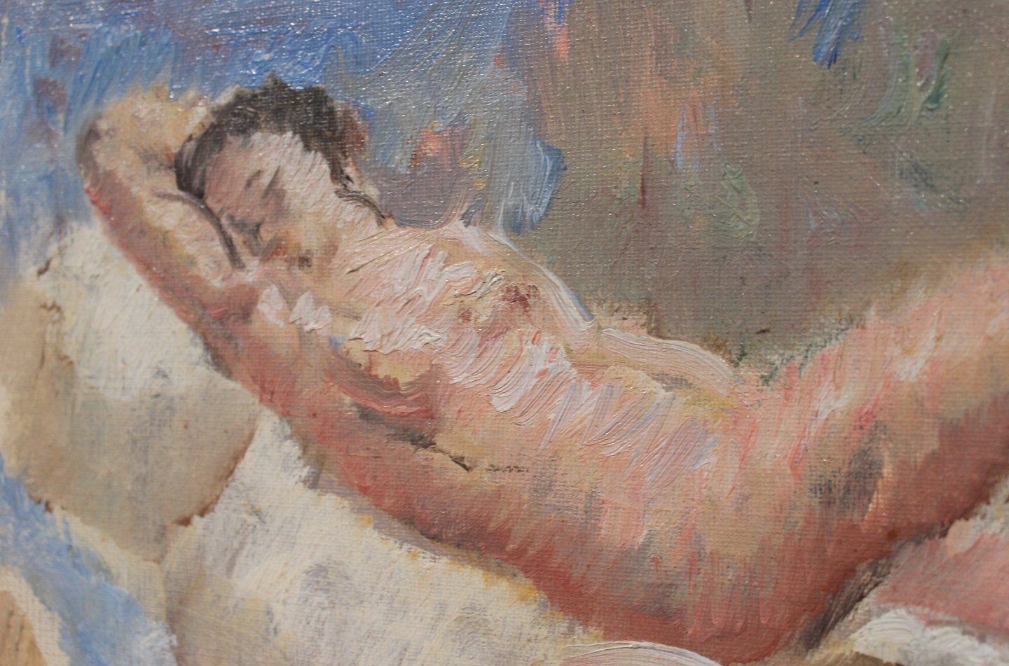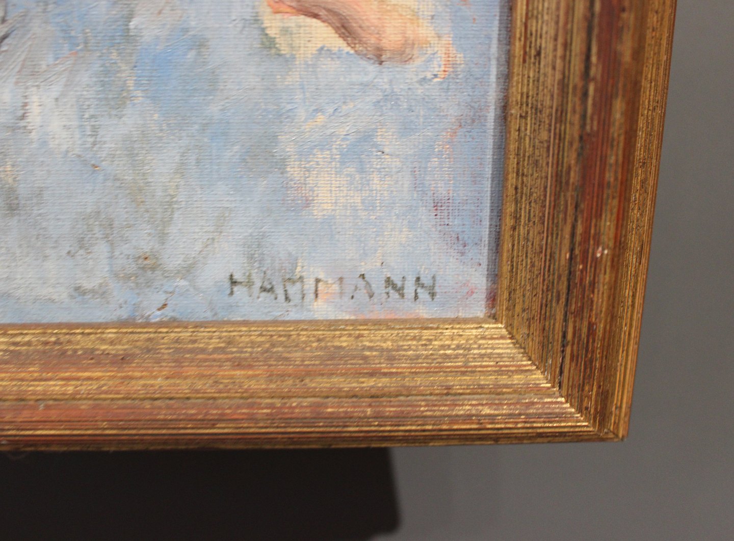 SolgtFint lille maleri på lærred med himmel motiv signeret Hamman af Marius Hammann f. 1879 - d. 1936.