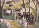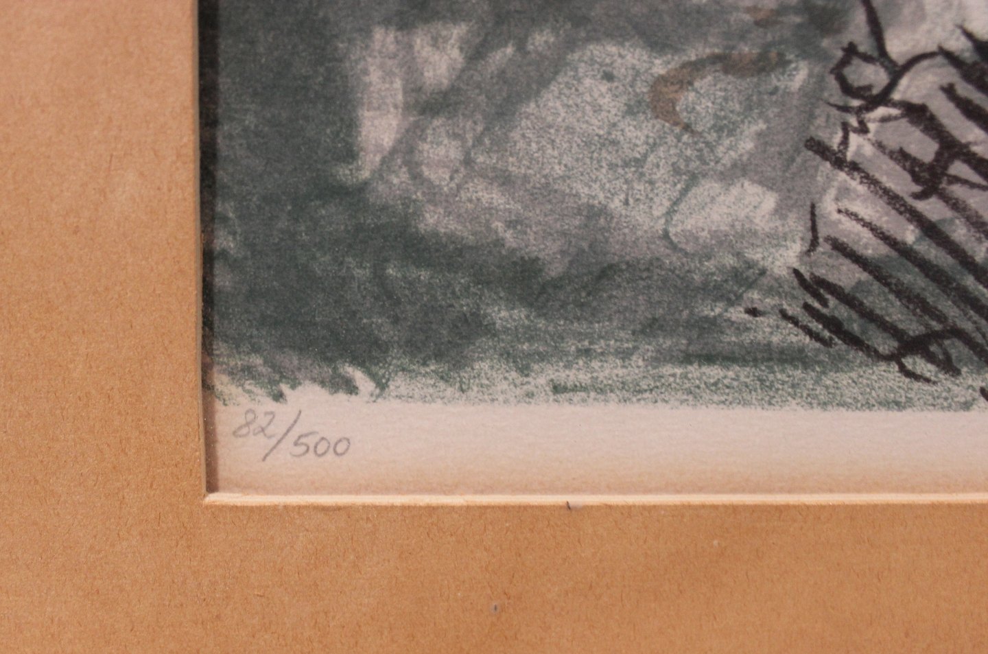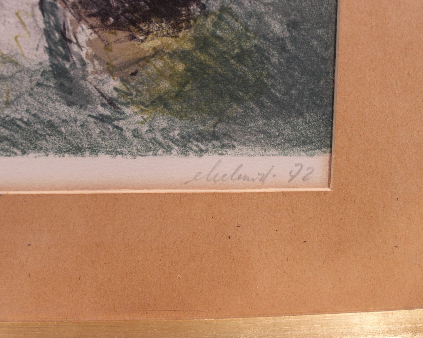 Simple lithographic in light colors of nature landscape from 1972, no. 82/500 and by Poul Ekelund.