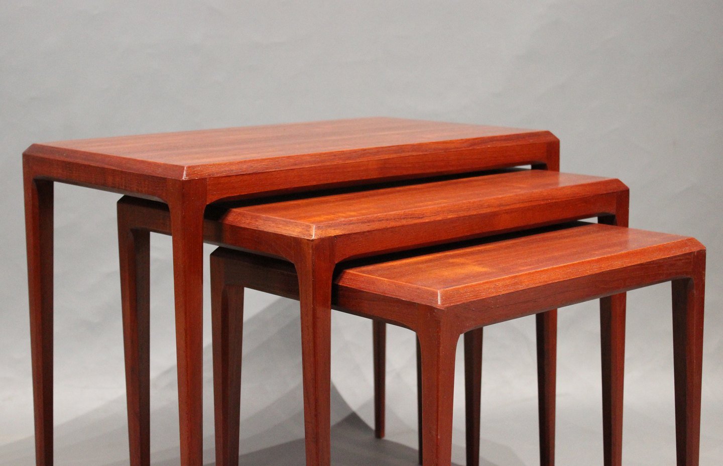 SoldA set of nesting tables in teak by Johannes Andersen and Silkeborg Furniture factory. The tables are in great vintage condition and from the 1960s.
