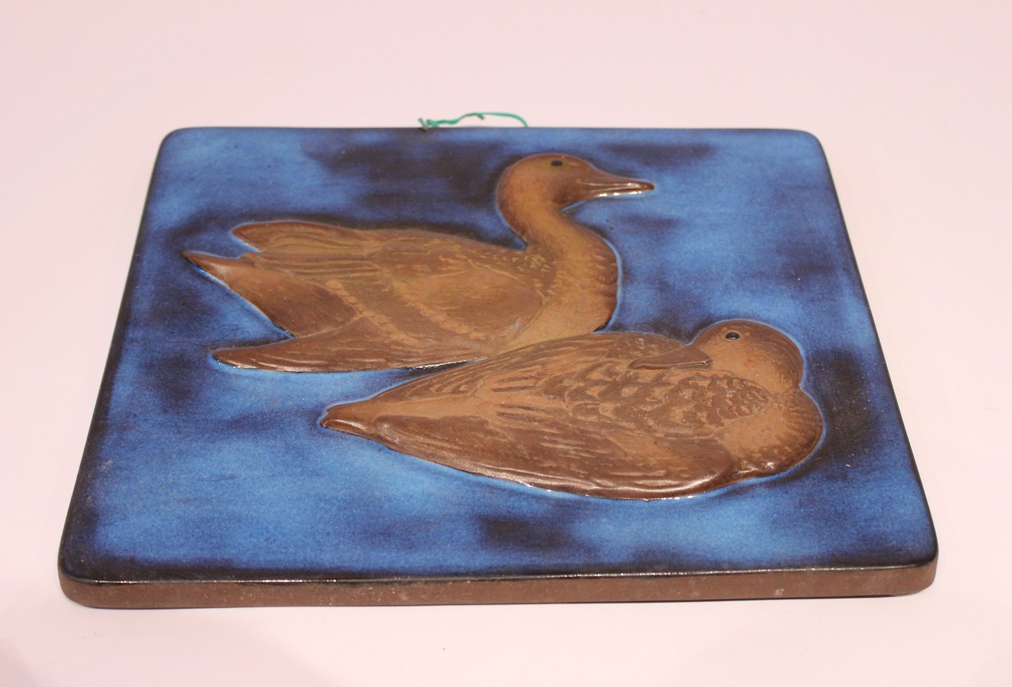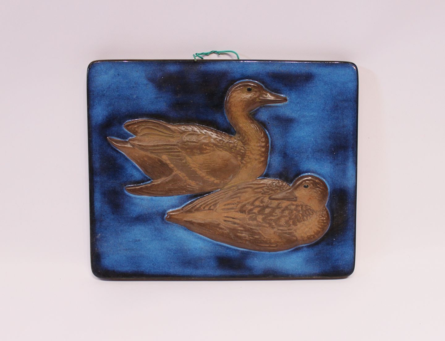 SoldCeramic relief with two ducks on a blue glazed background by Leif Rydeng for Aluminia, no.: 560/2903.