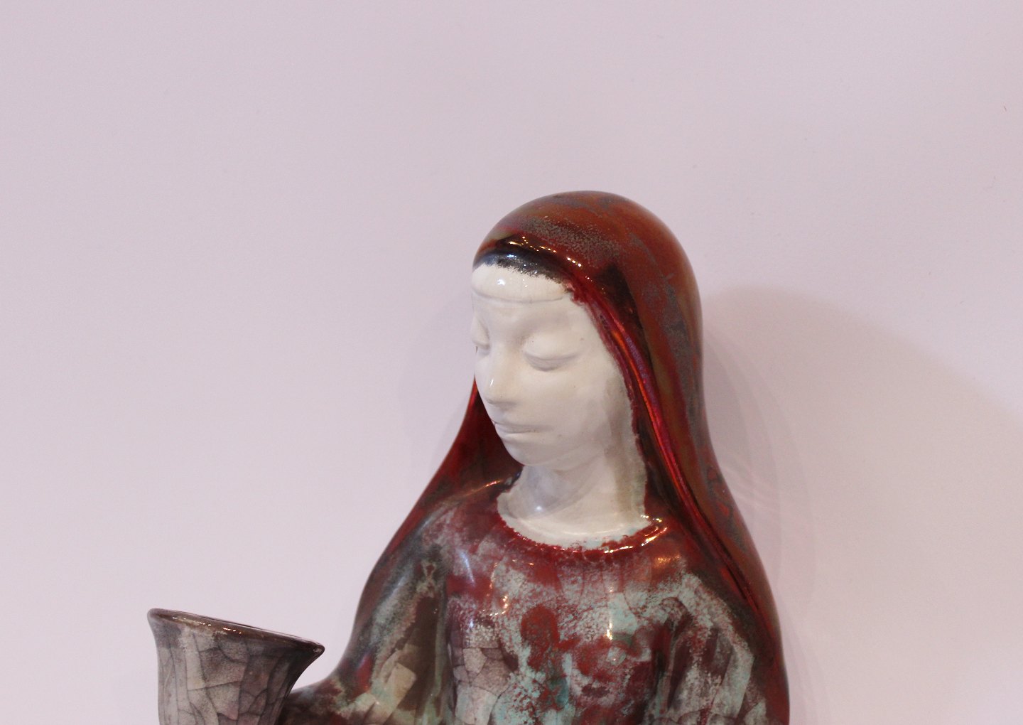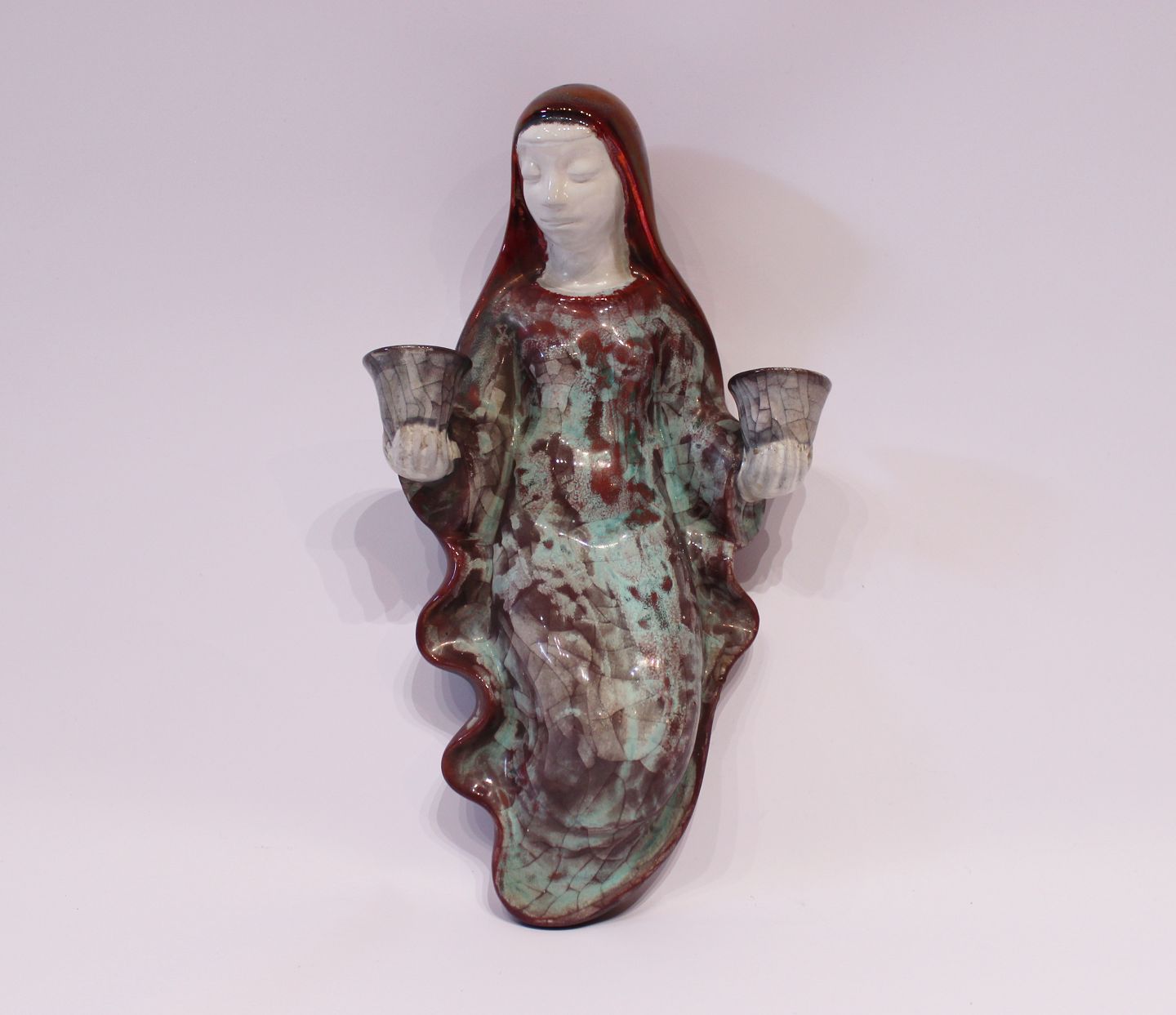 Glazed ceramic wall candlestick in the shape of a Madonna figure, no.: 3829, by Michael Andersen & Son.