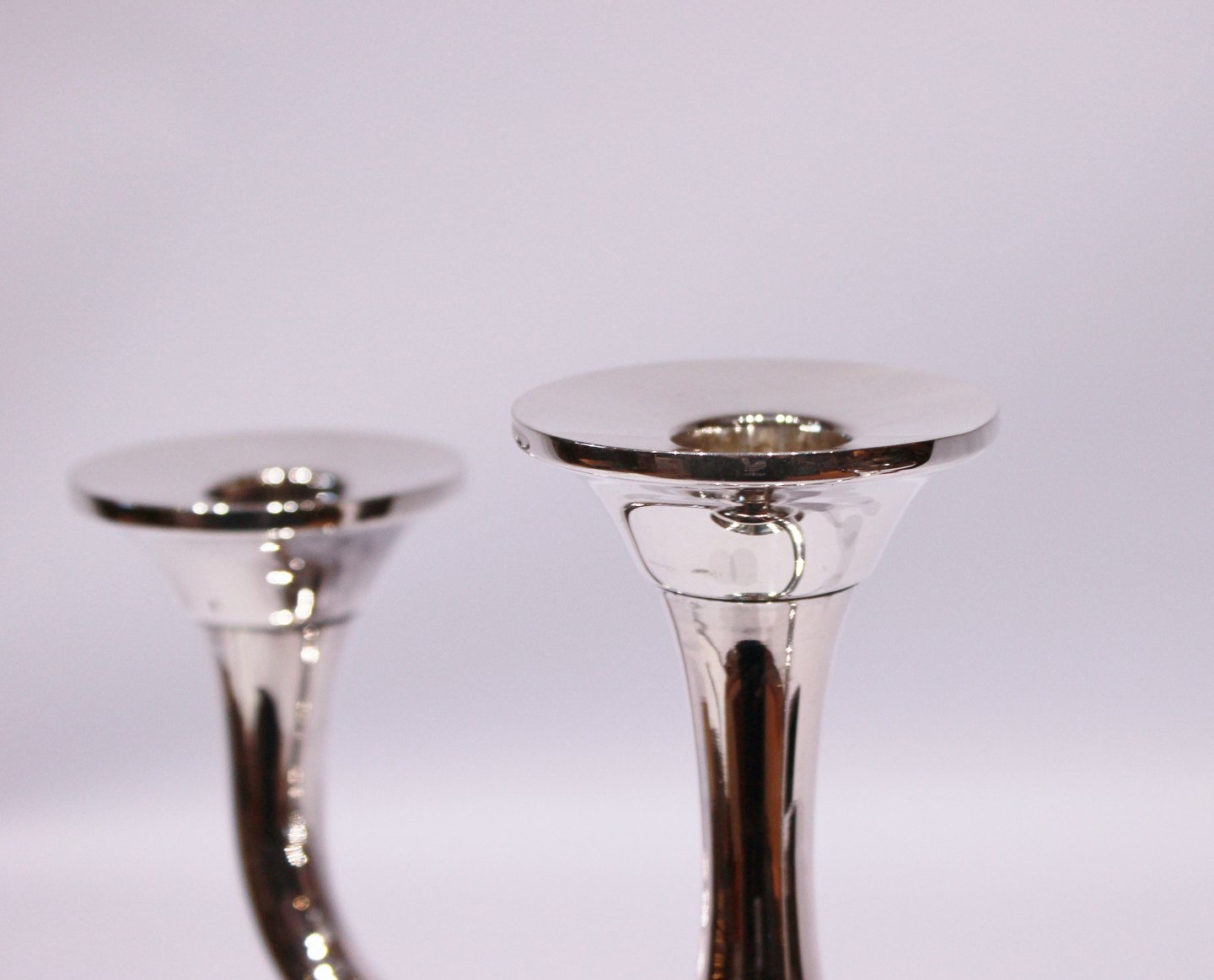 A pair of three armed candlesticks in 830 silver.