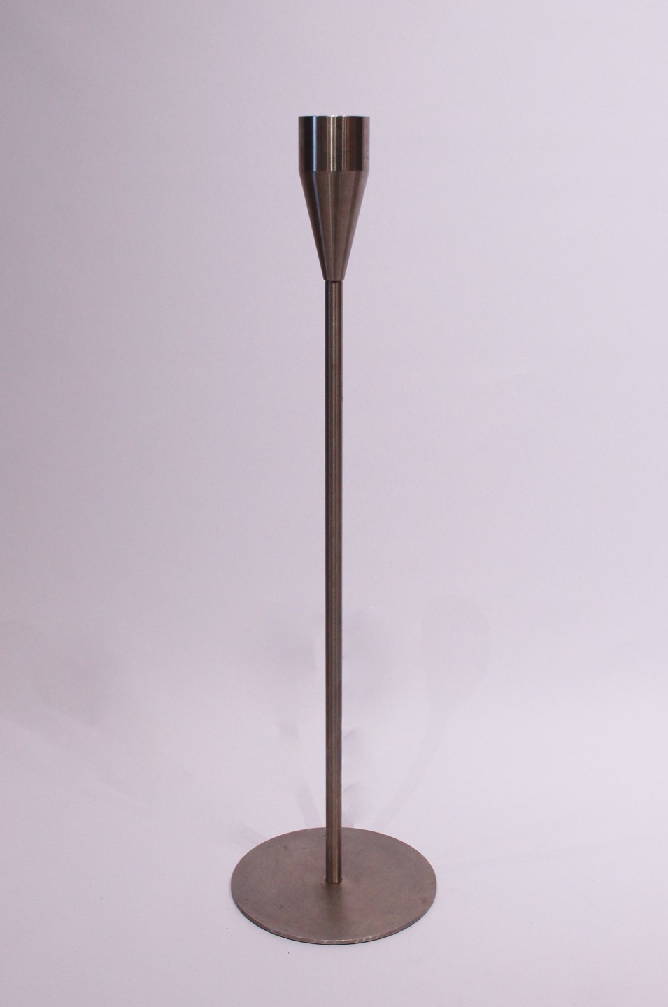 Set of 4 Piet Hein Maxi candlesticks, Saturn, Jupiter, Venus and Mars, in brushed steel.