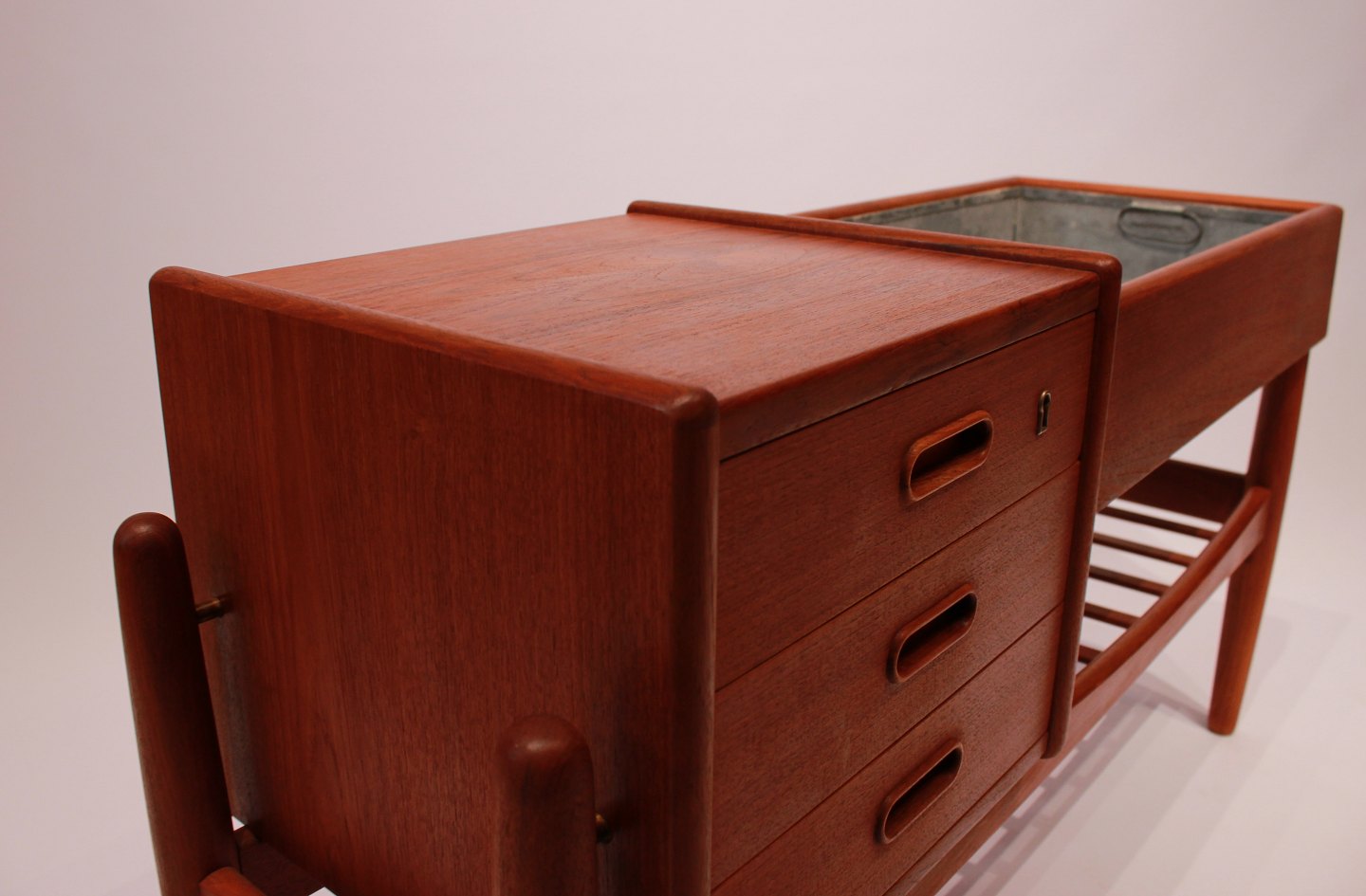 SolgtLille skænk i teak med metal skuffe designet af Arne Vodder. Skænken er af Dansk design fra 1960erne.