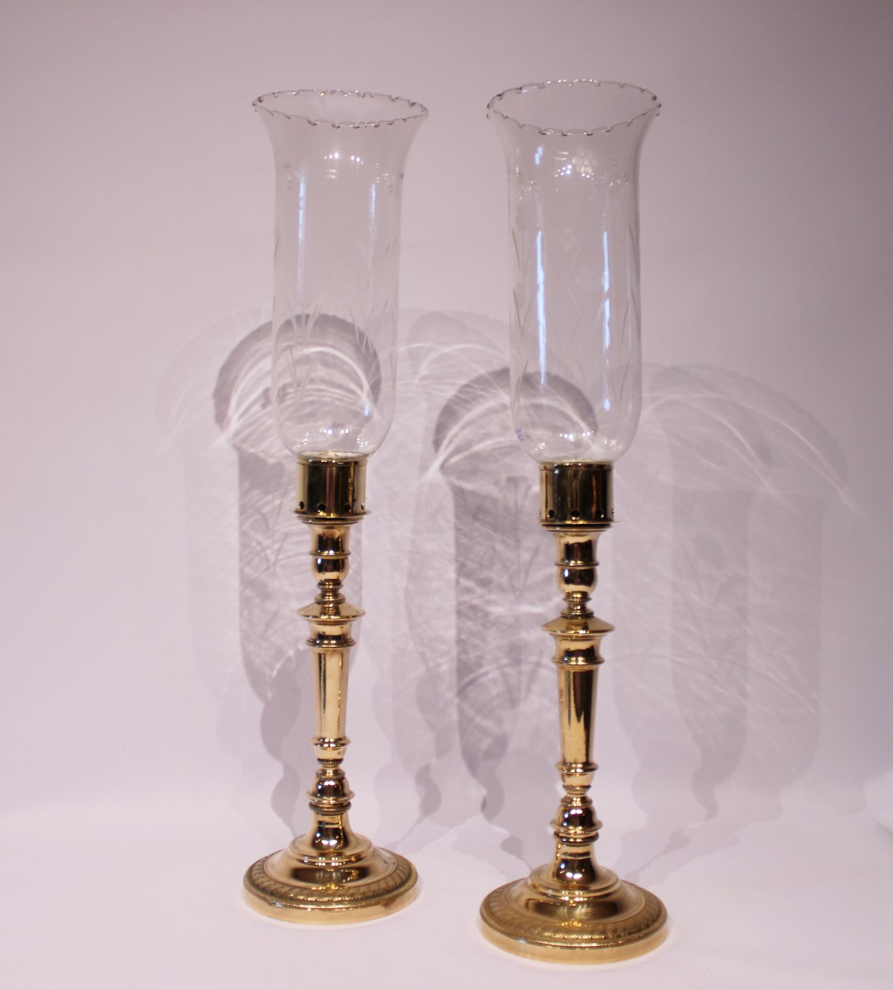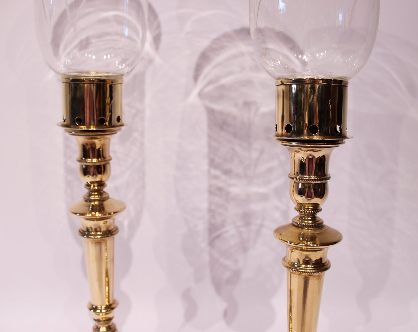 SoldA pair of "Hurricane" candlesticks in brass, in great vintage condition from around the 1920-1930s.