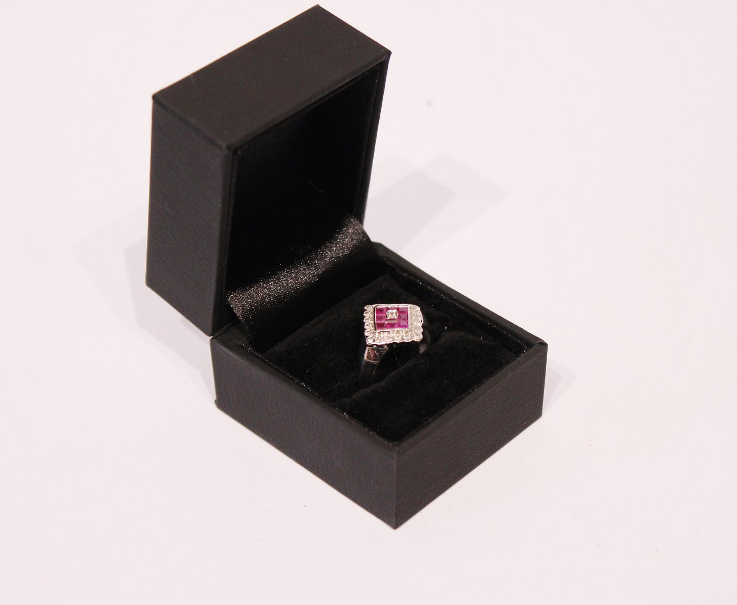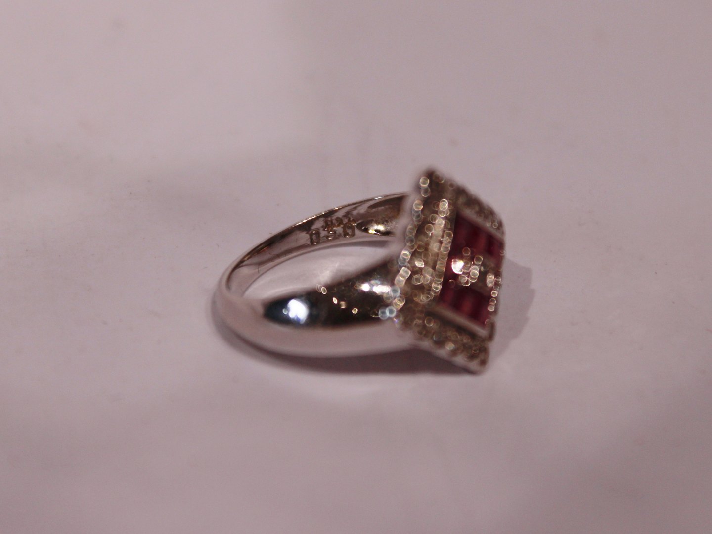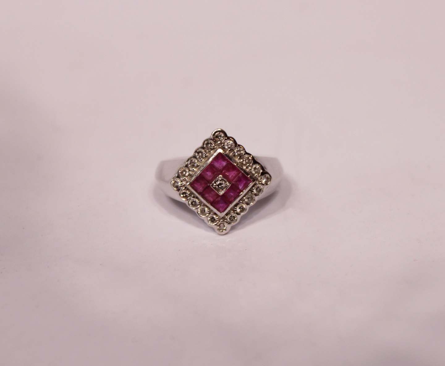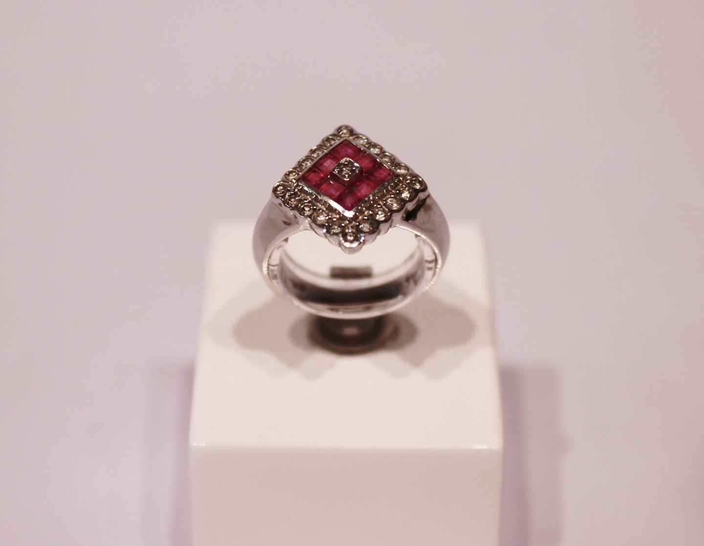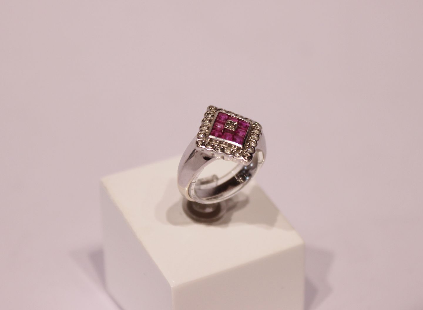 14 kt. Hvidguldsring med 0,30 ct. brillanter og pink safir, stemplet ERO.