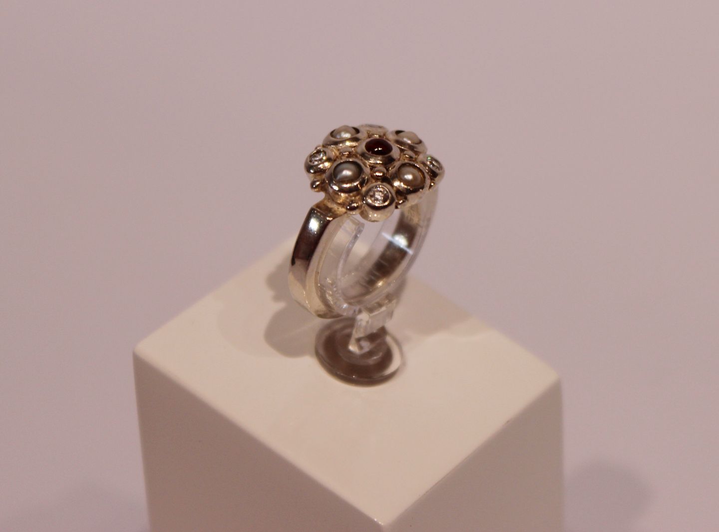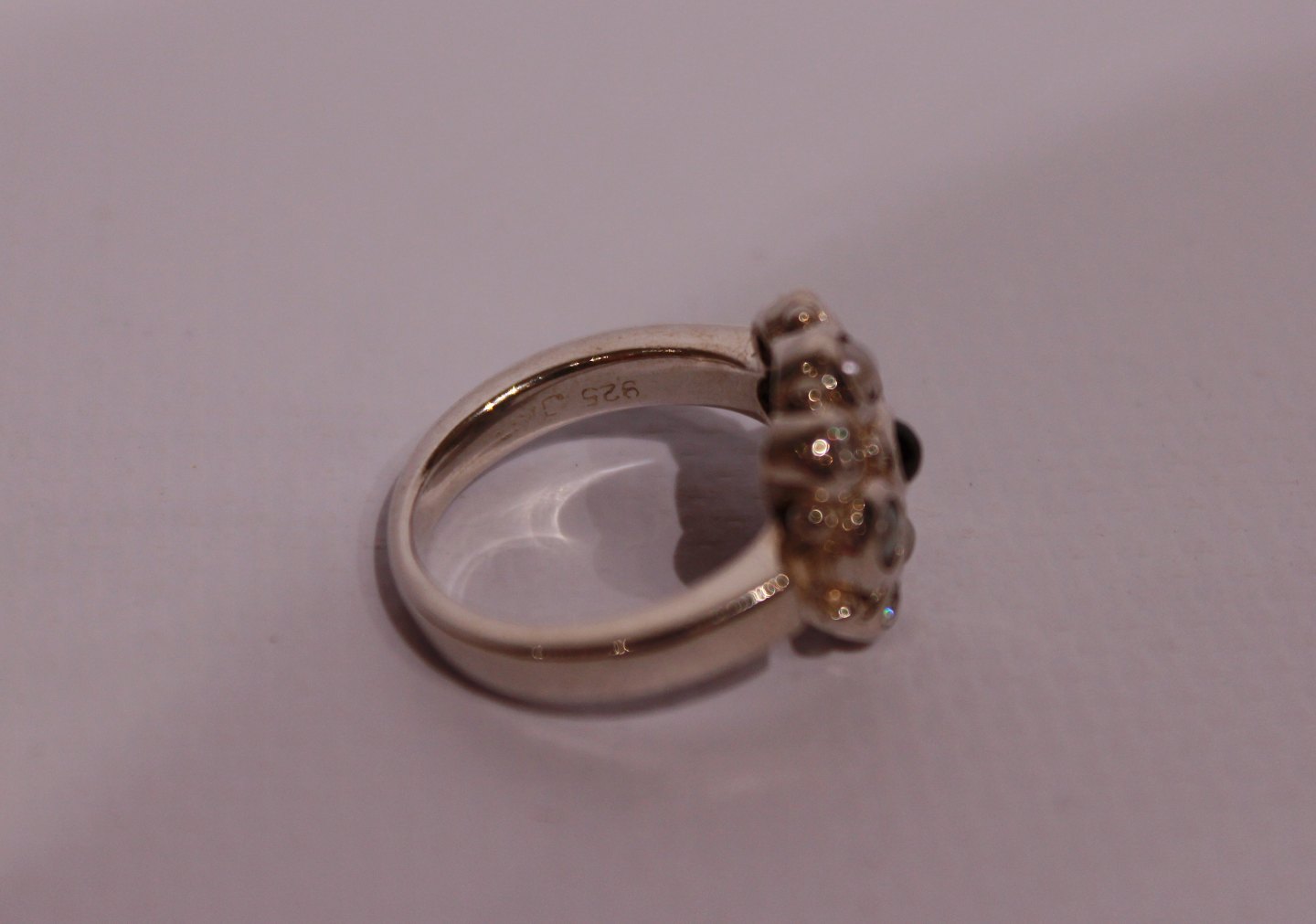 Ring with amber, mother of pearl and small stones, stamped JAR and of 925 sterling silver.