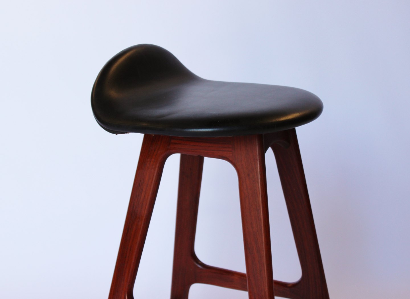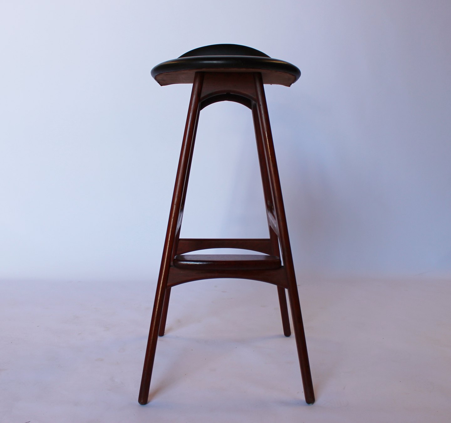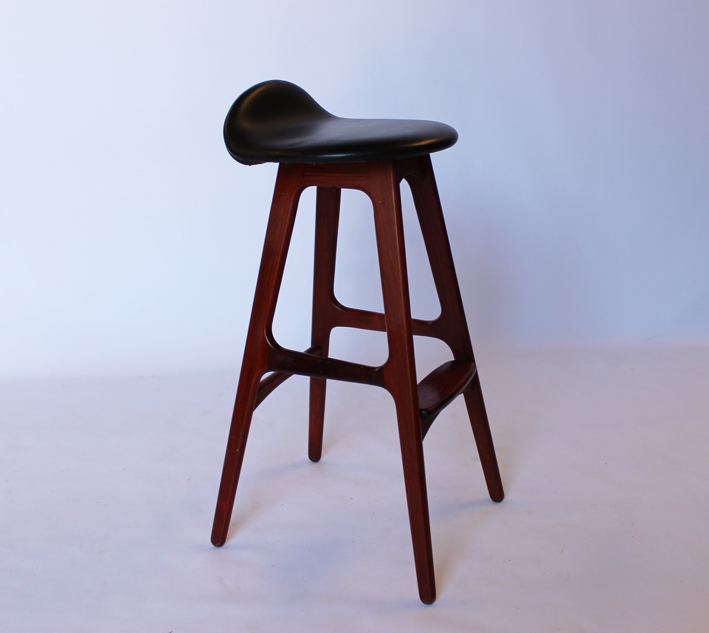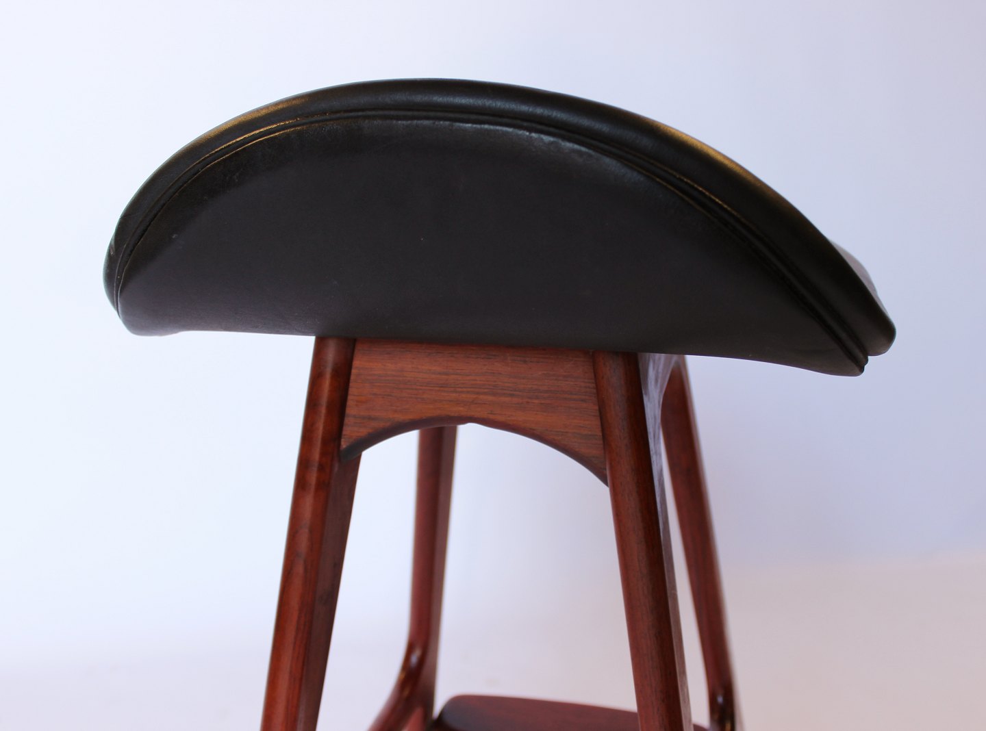 Barstol, model OD61, designet af Erik Buch og fremstillet af Odense Møbelfabrik. Stolen er af palisander og sort læder sæde.