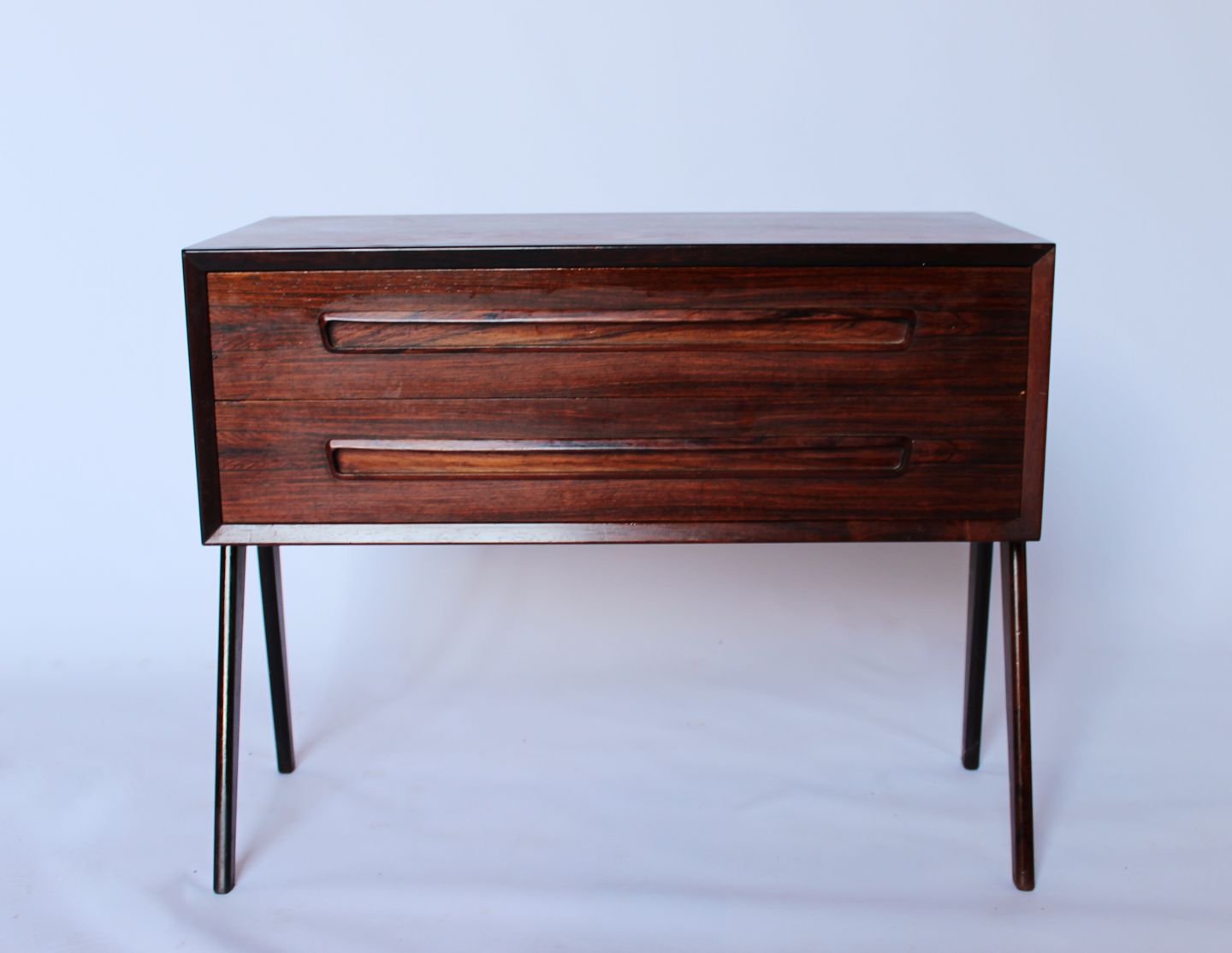 SoldSmall rosewood chest of drawers with two drawers of danish design from the 1960s.