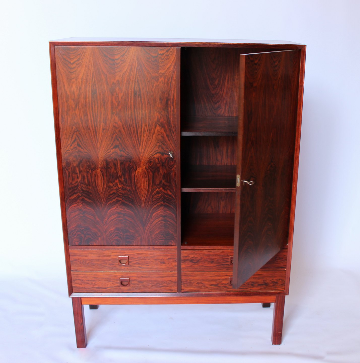SolgtStort dæktøjsskab i palisander af dansk design og fremstillet af Brouer i 1960erne.
