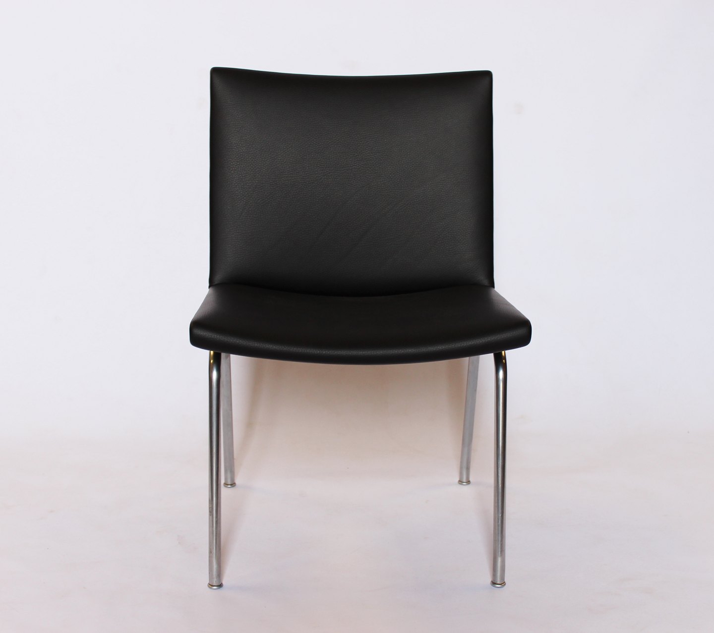 Set of 4 "Airport-chairs", model AP37, designed by Hans J. Wegner and manufactured by AP Stolen in the 1950s. The chairs are newly upholstered in black classic leather.