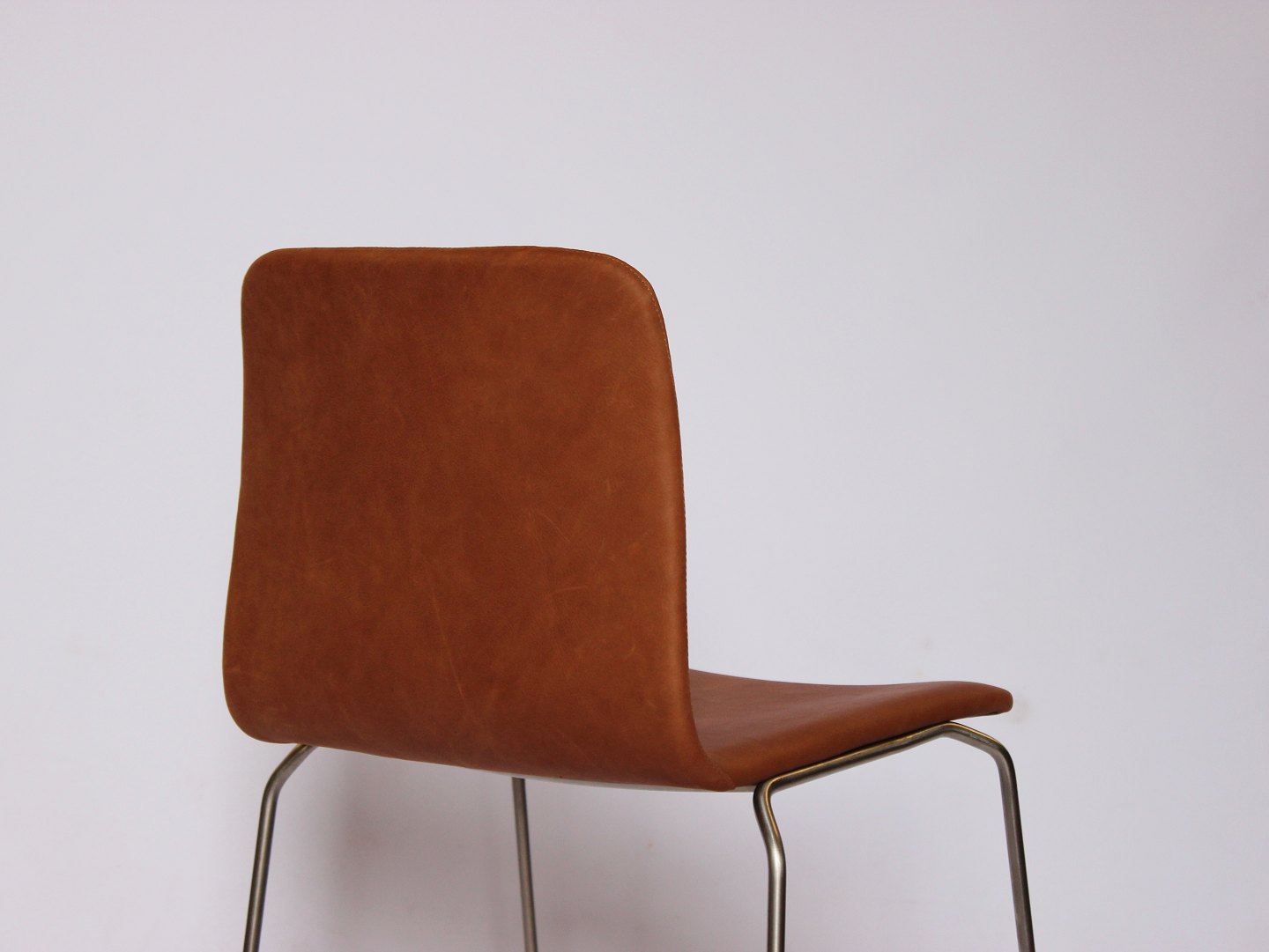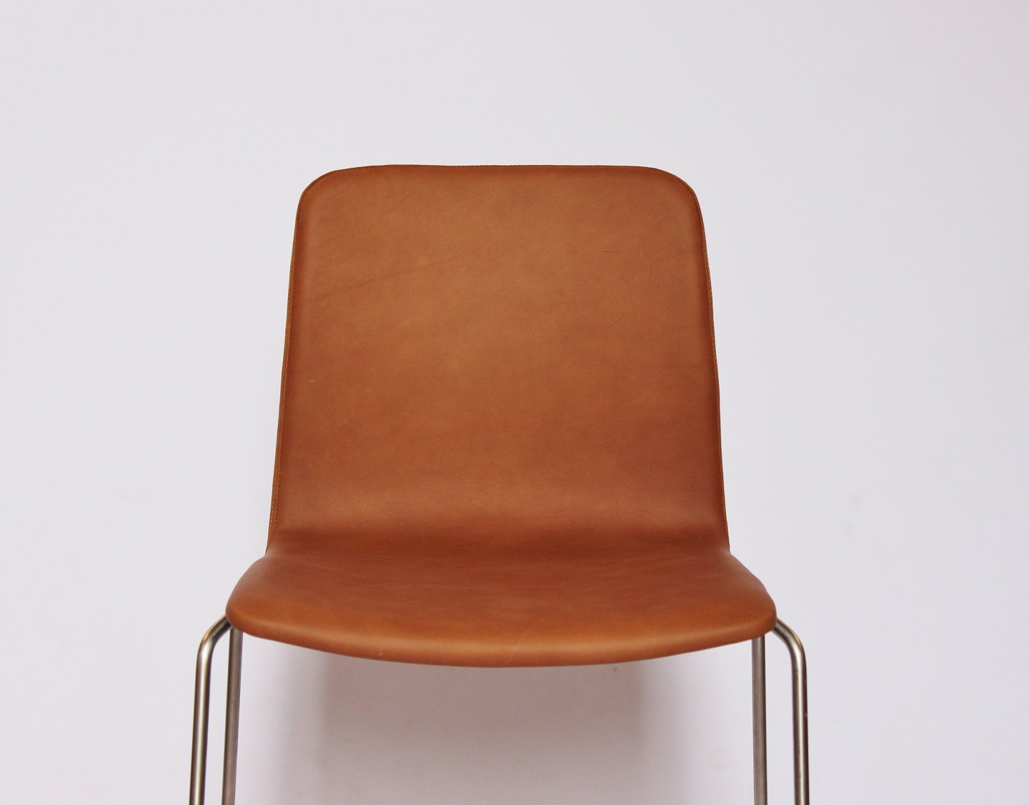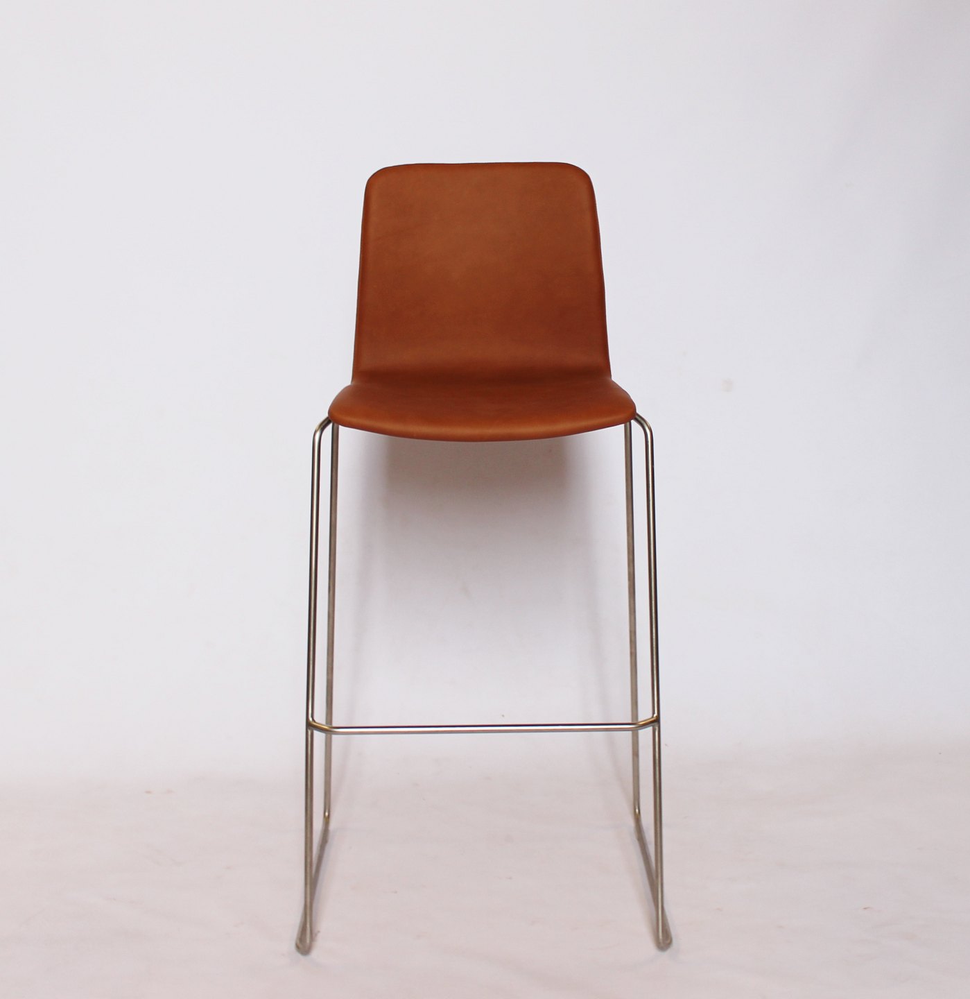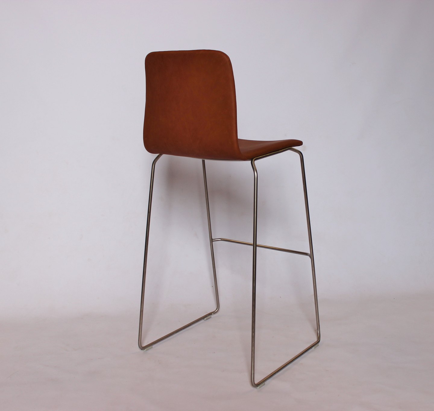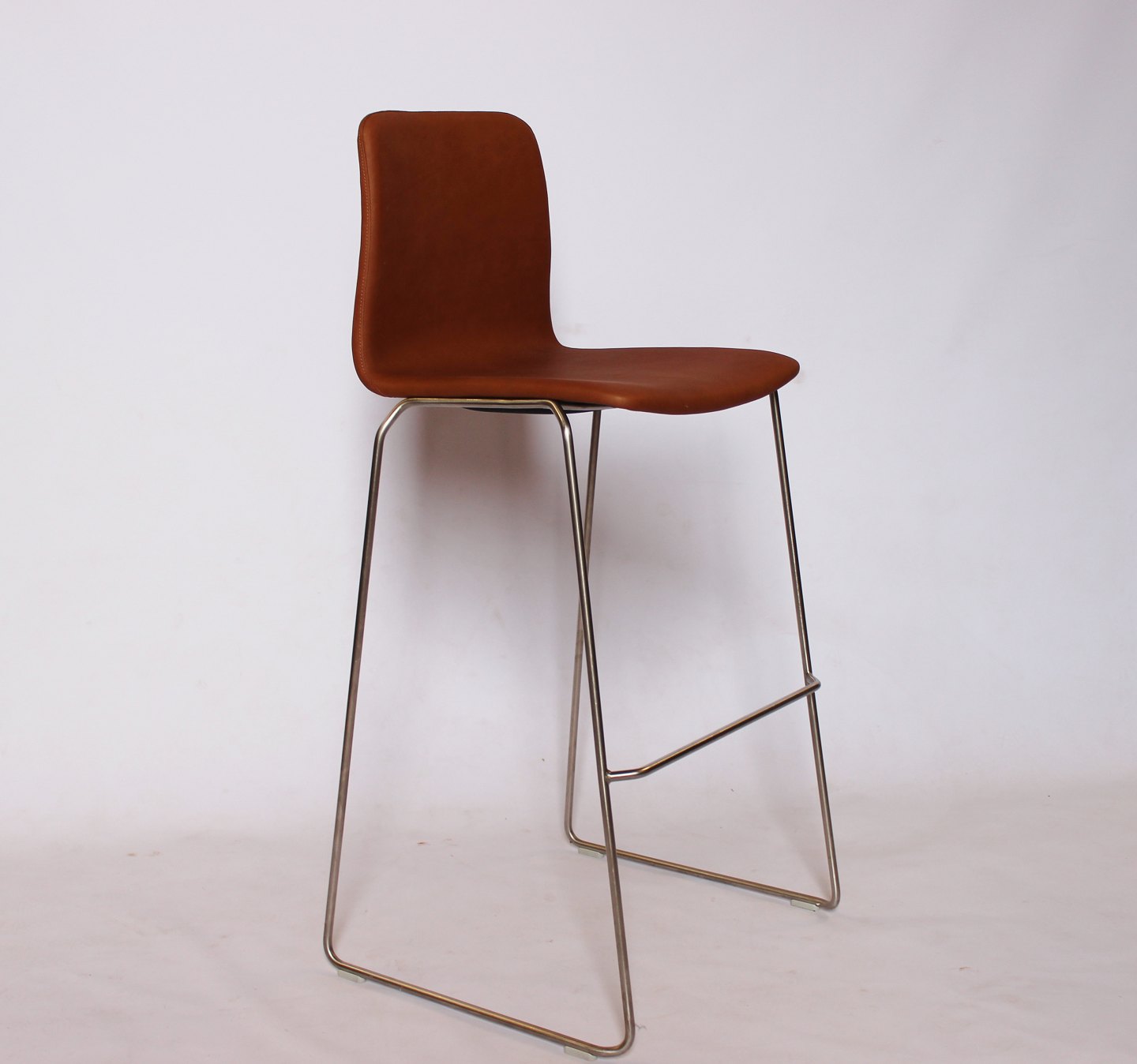 SoldSet of 4 barstools, model JW01, with frame of chrome and upholstered with cognac elegance patinated leather, by Jacob Wagner for HAY.