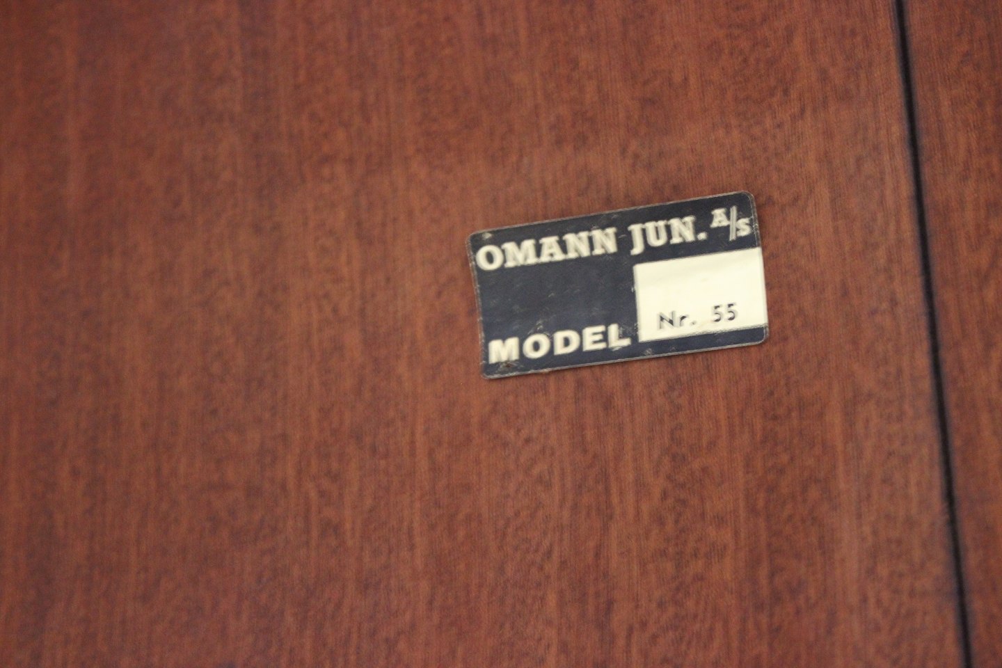 Stort spisebord med 3 tillægsplader i palisander, model nr.: 55 designet af Omann Junior og fremstillet omkring 1960erne. Bordet er i flot brugt stand.