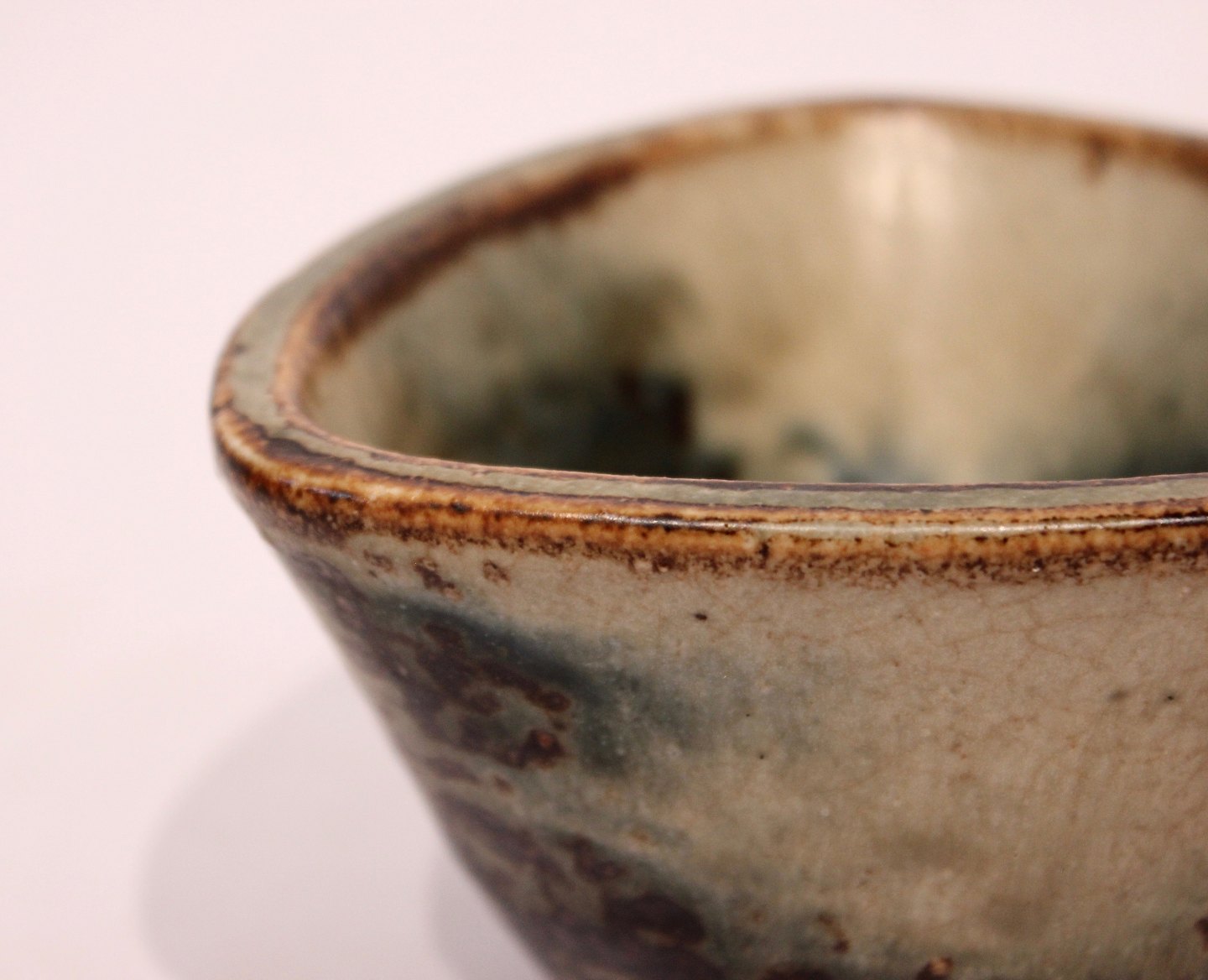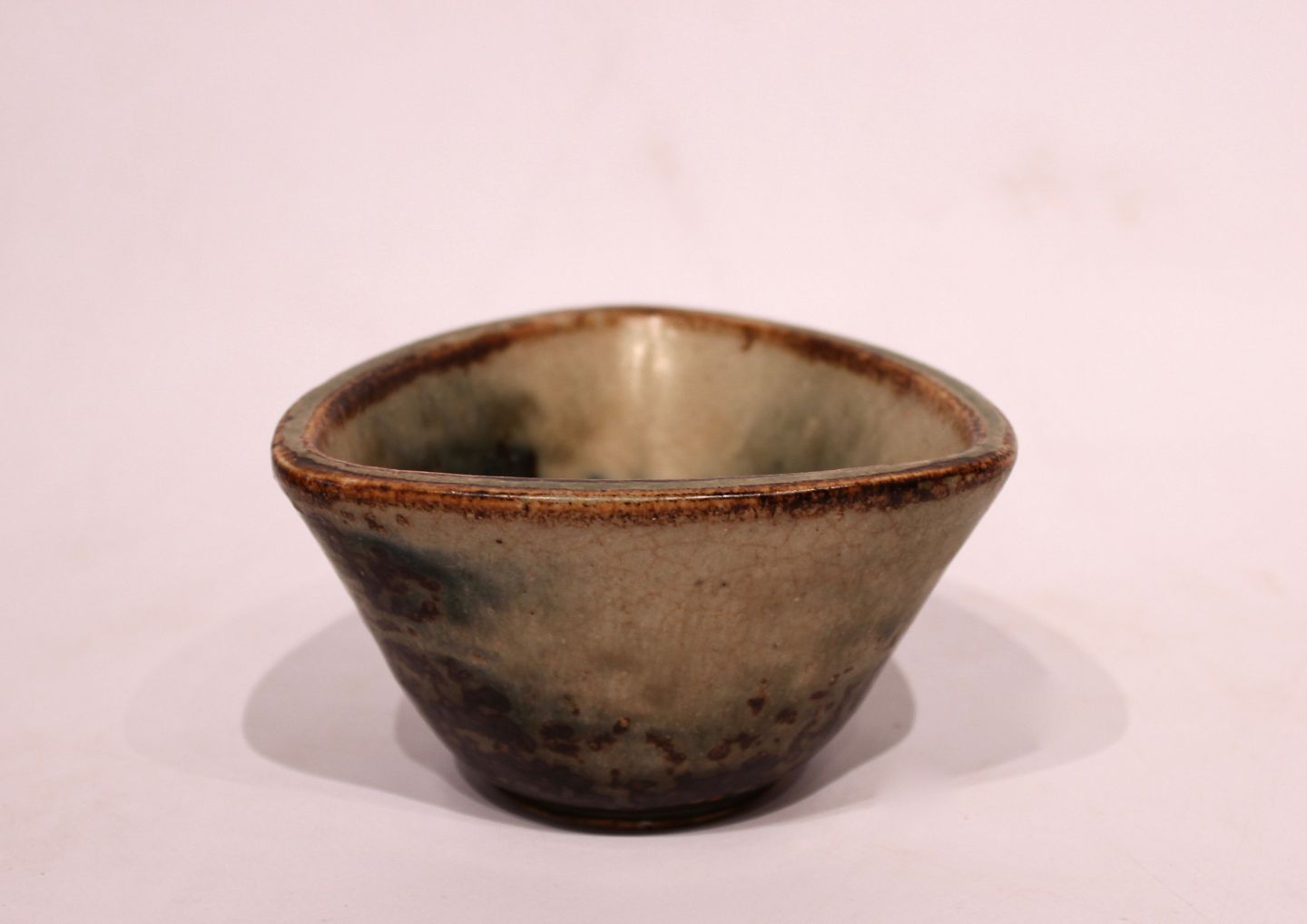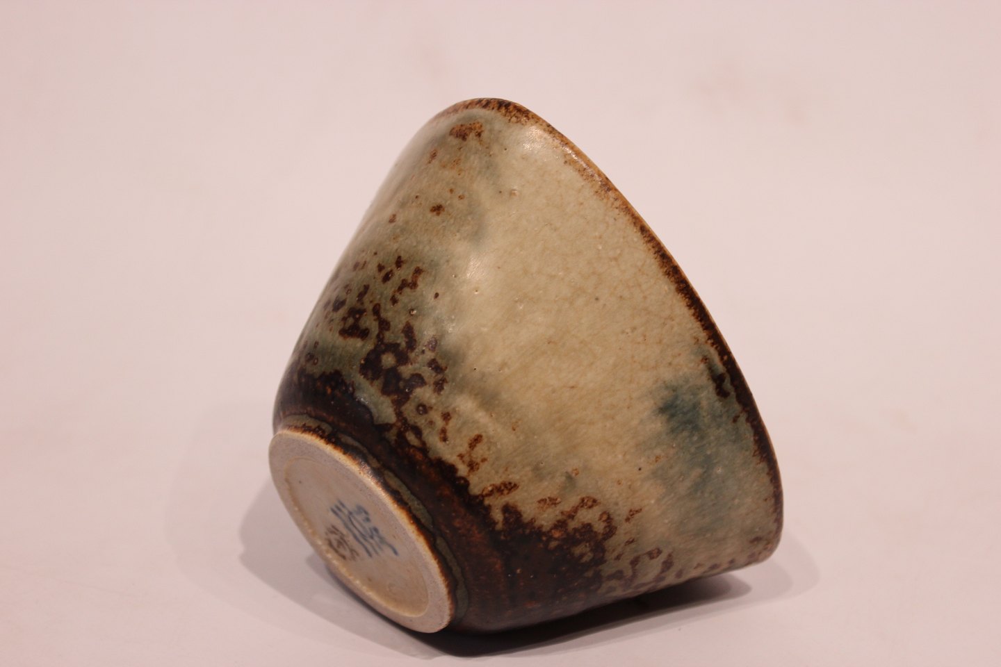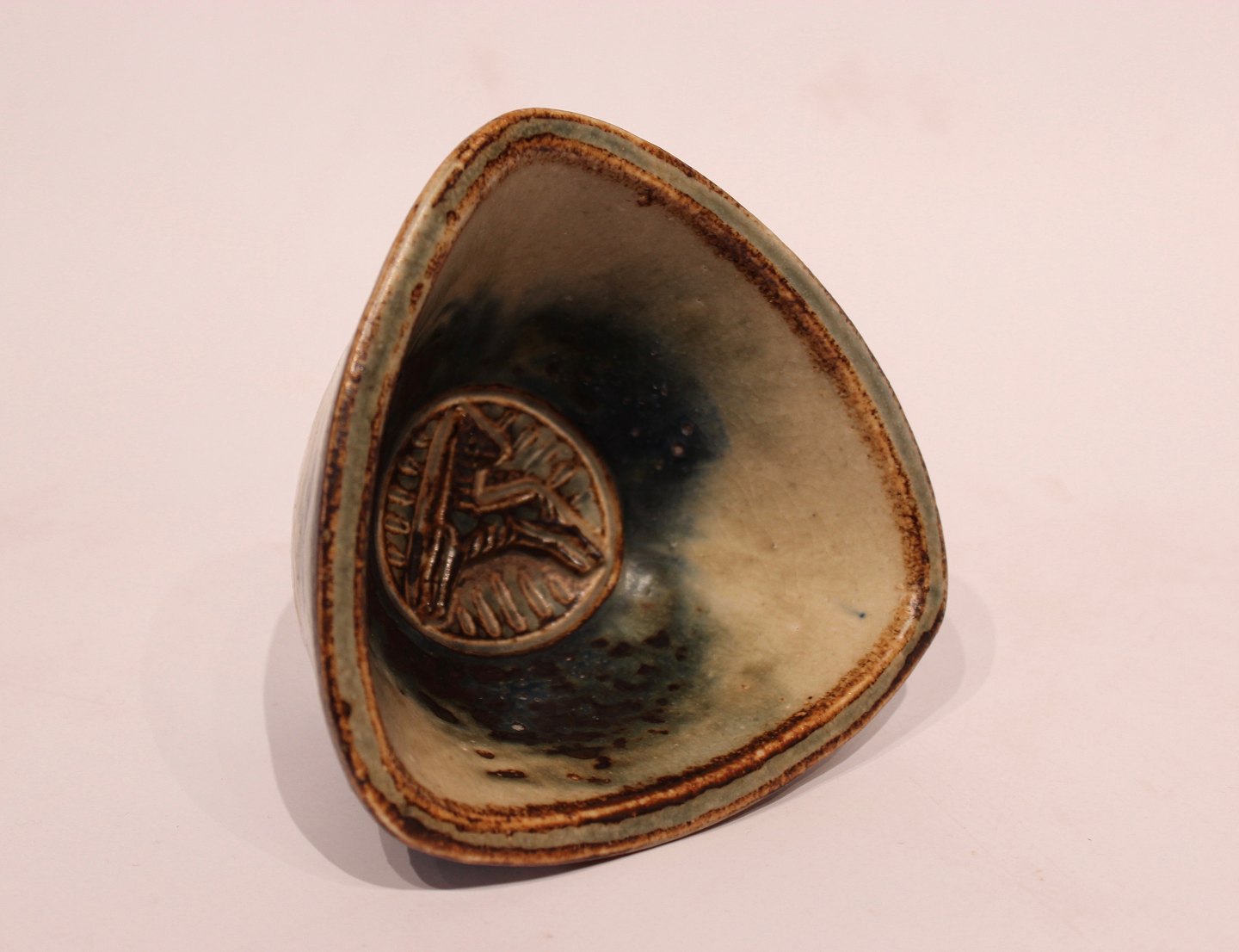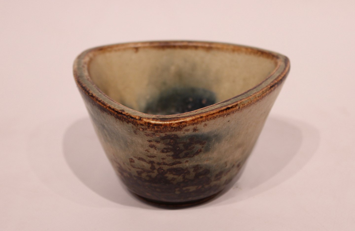 SoldRoyal Copenhagen triangular ceramic bowl with sung glaze by Jais Nielsen.