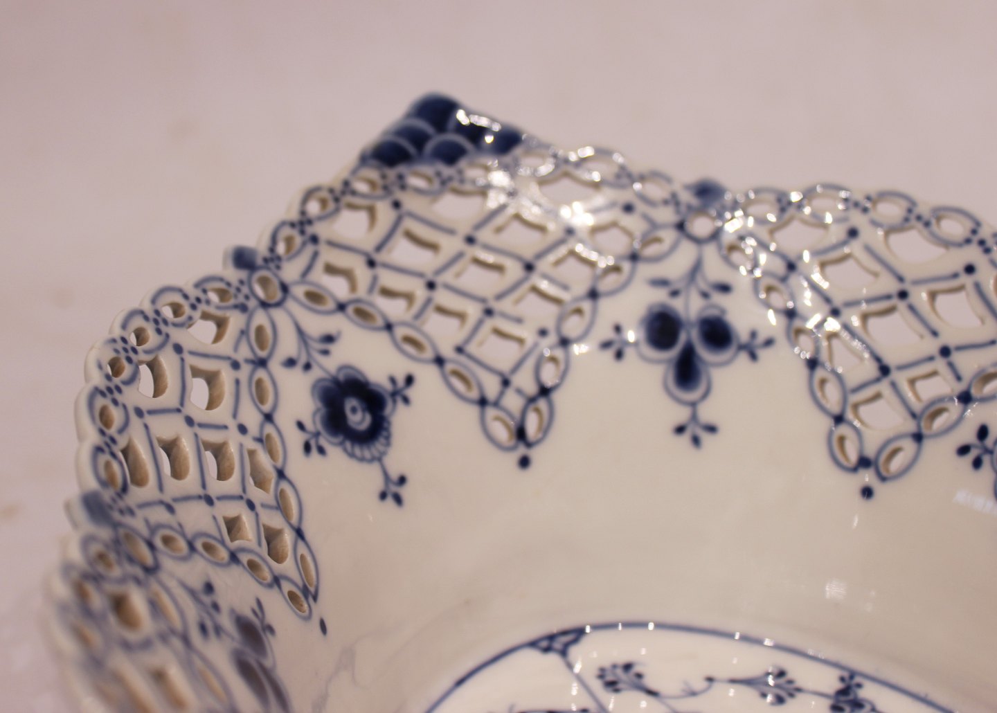 SoldRoyal Copenhagen blue fluted lace fruit bowl, no.: 1/6501. The bowl is in great vintage condition.