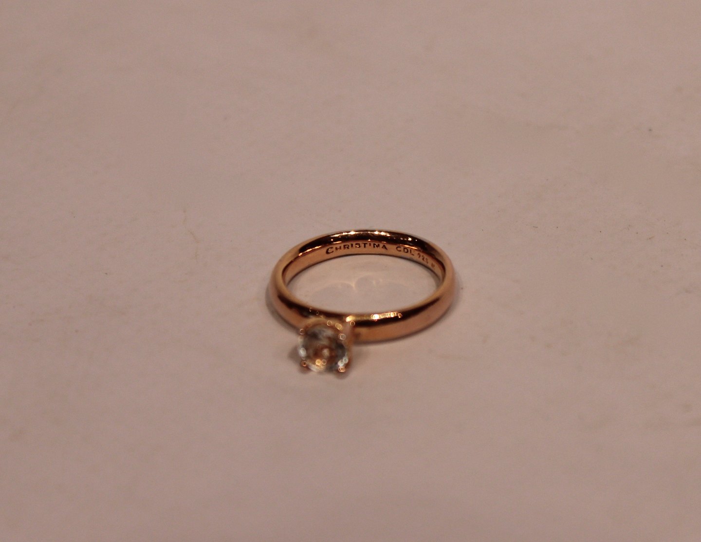 Gilded 925 sterling silver ring with large clear stone by Christina Jewelry.