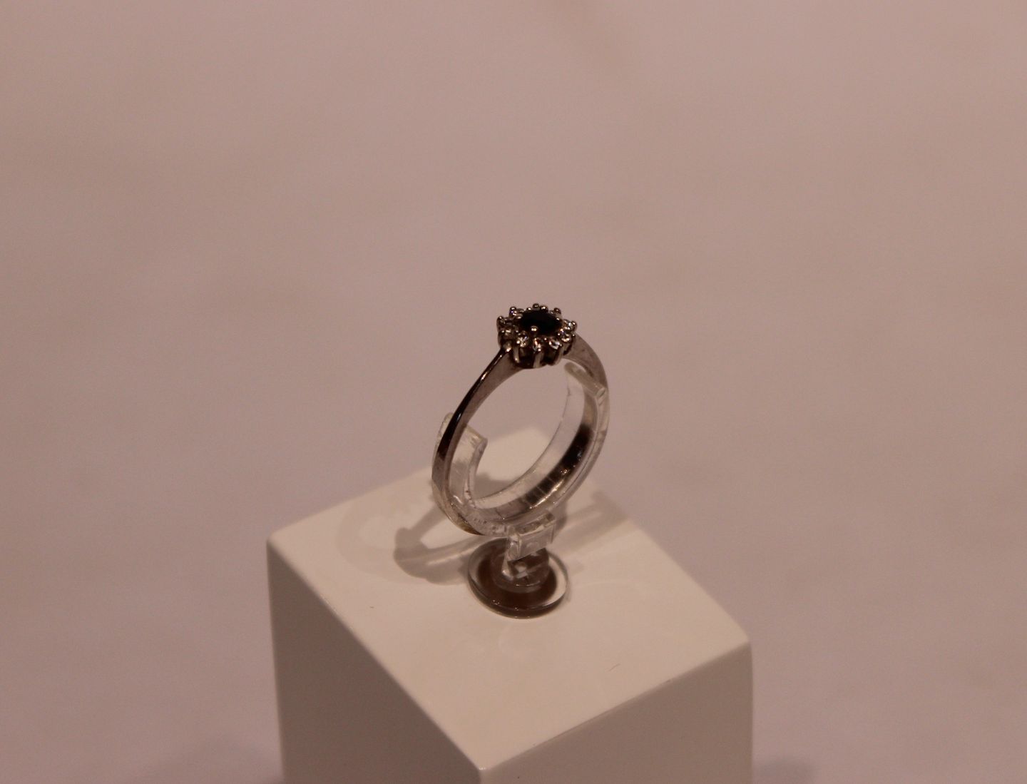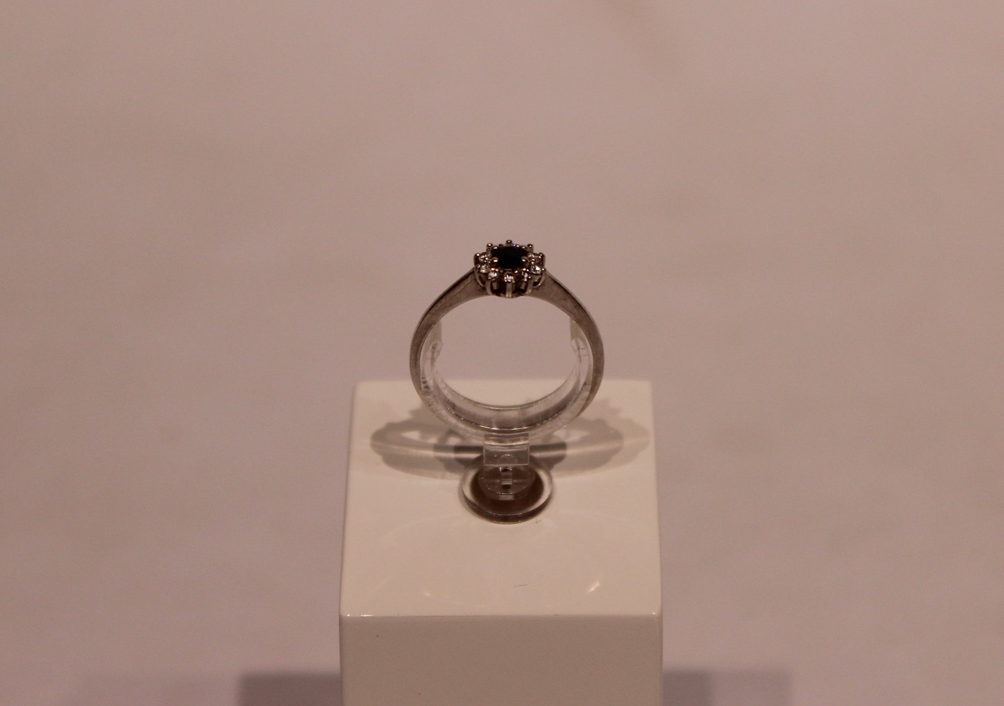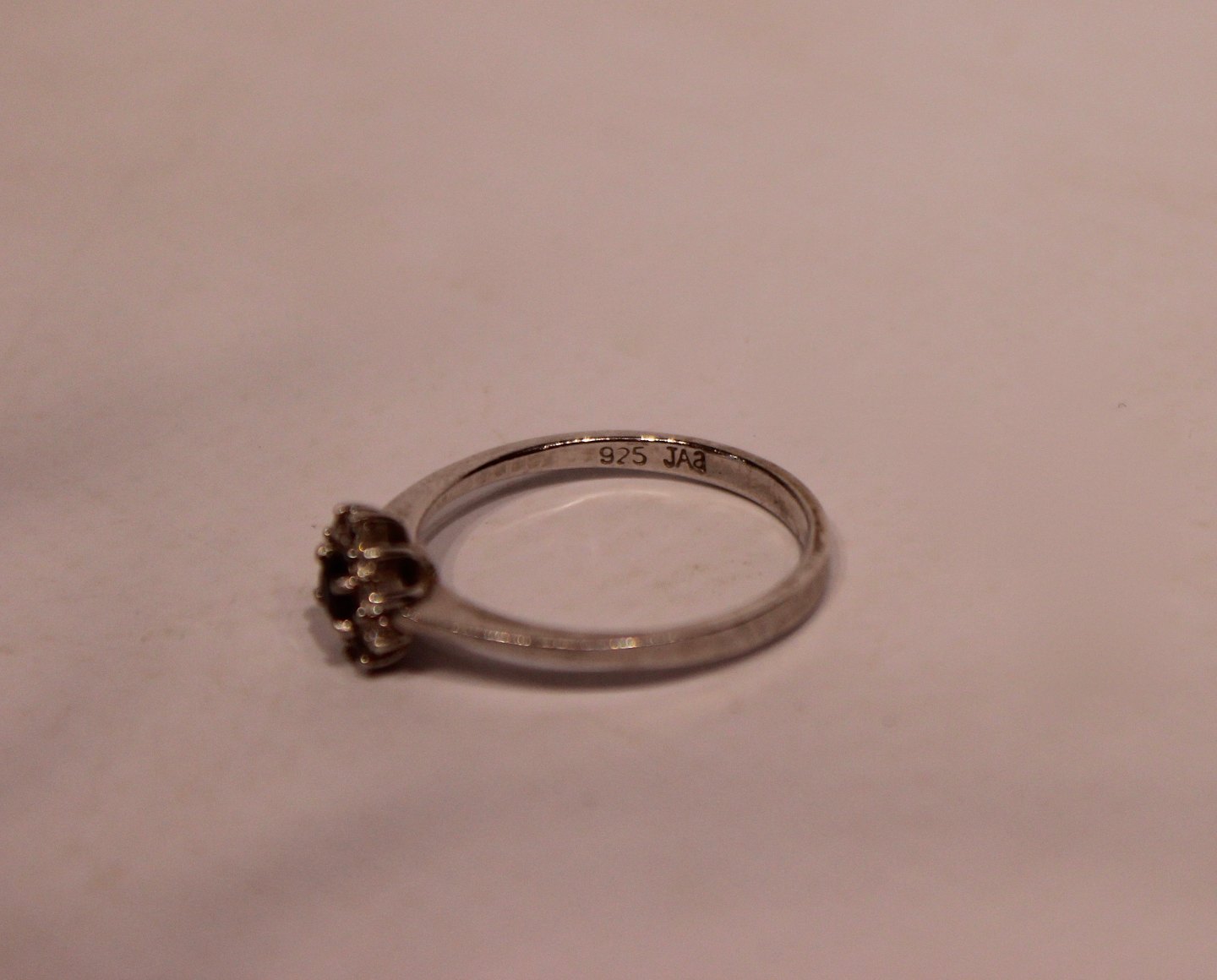 Ring of 925 sterling silver with saphire and clear stones, stamped JAa.