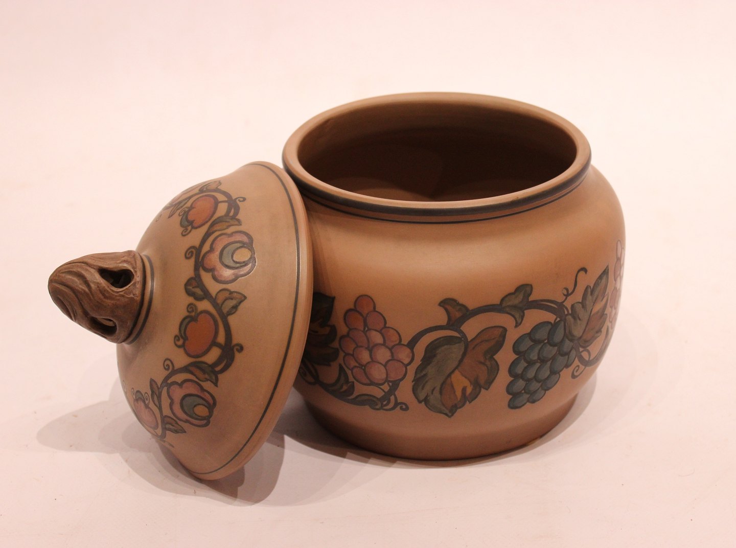 Keramik krukke i brune farver af Hjort Danmark fra 1960erne.