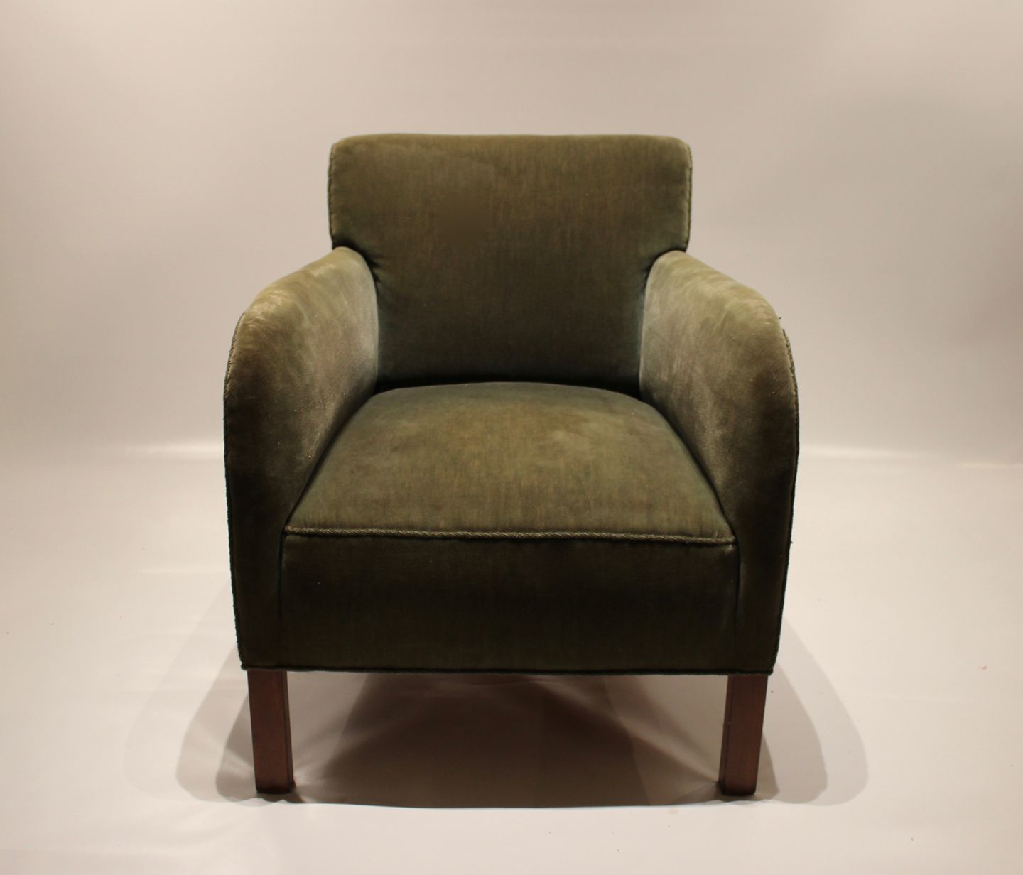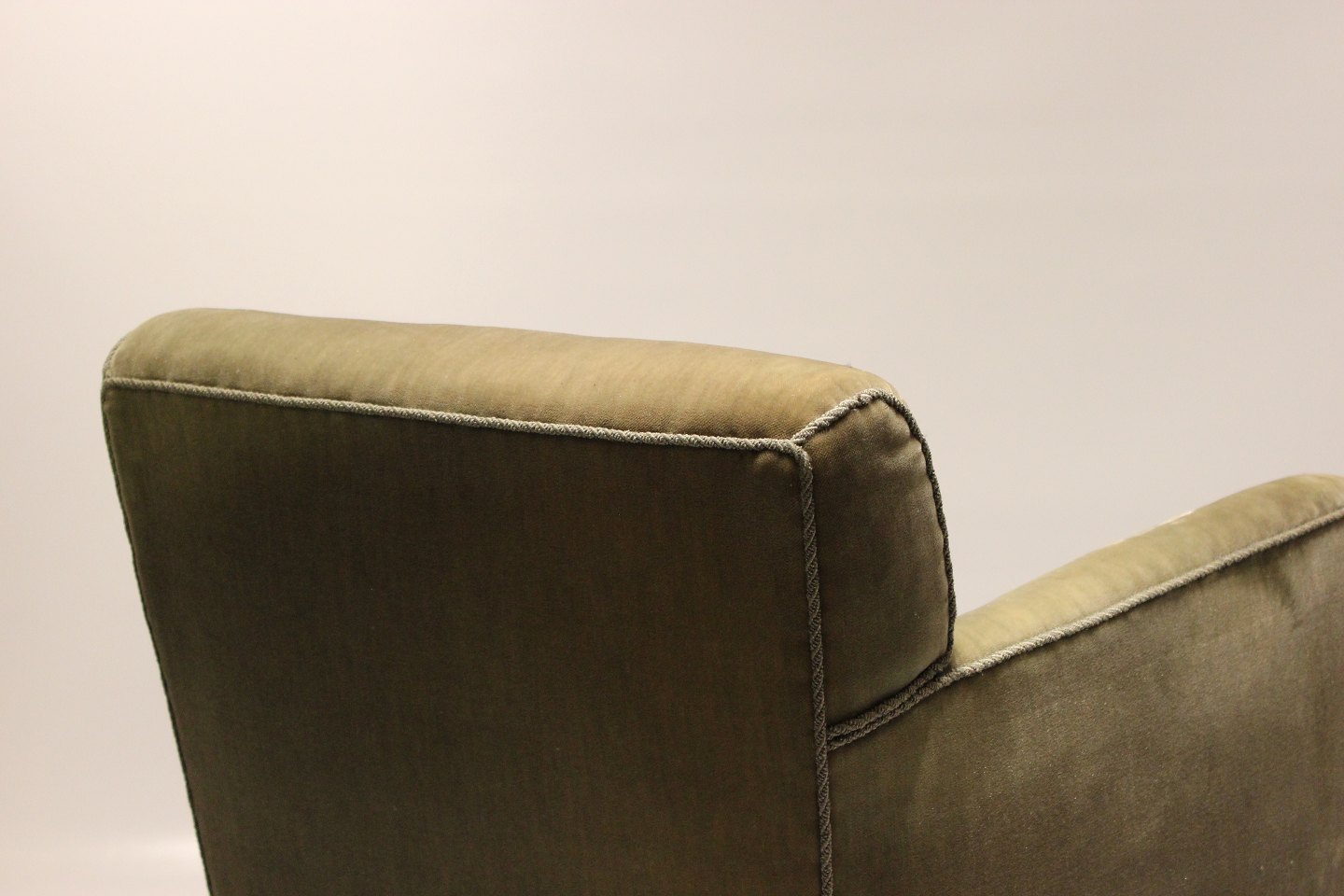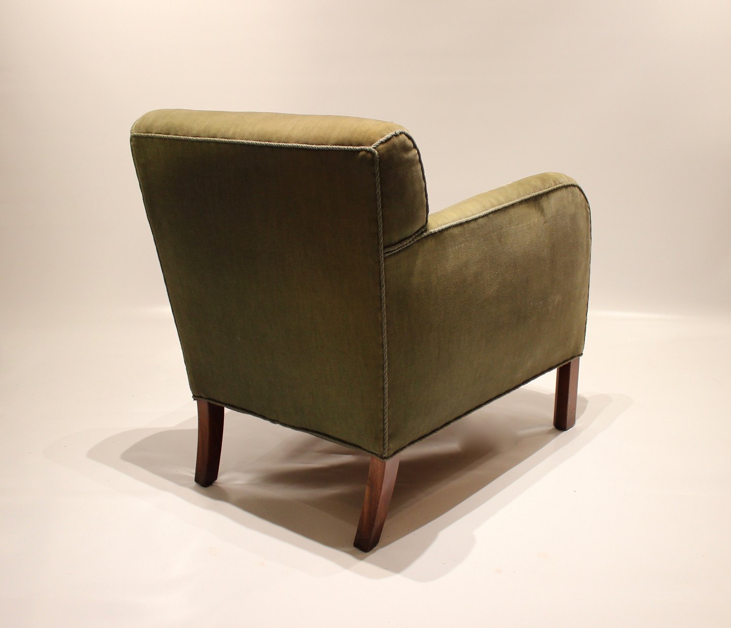 Easy chair upholstered with green fabric of danish design from the 1960s.