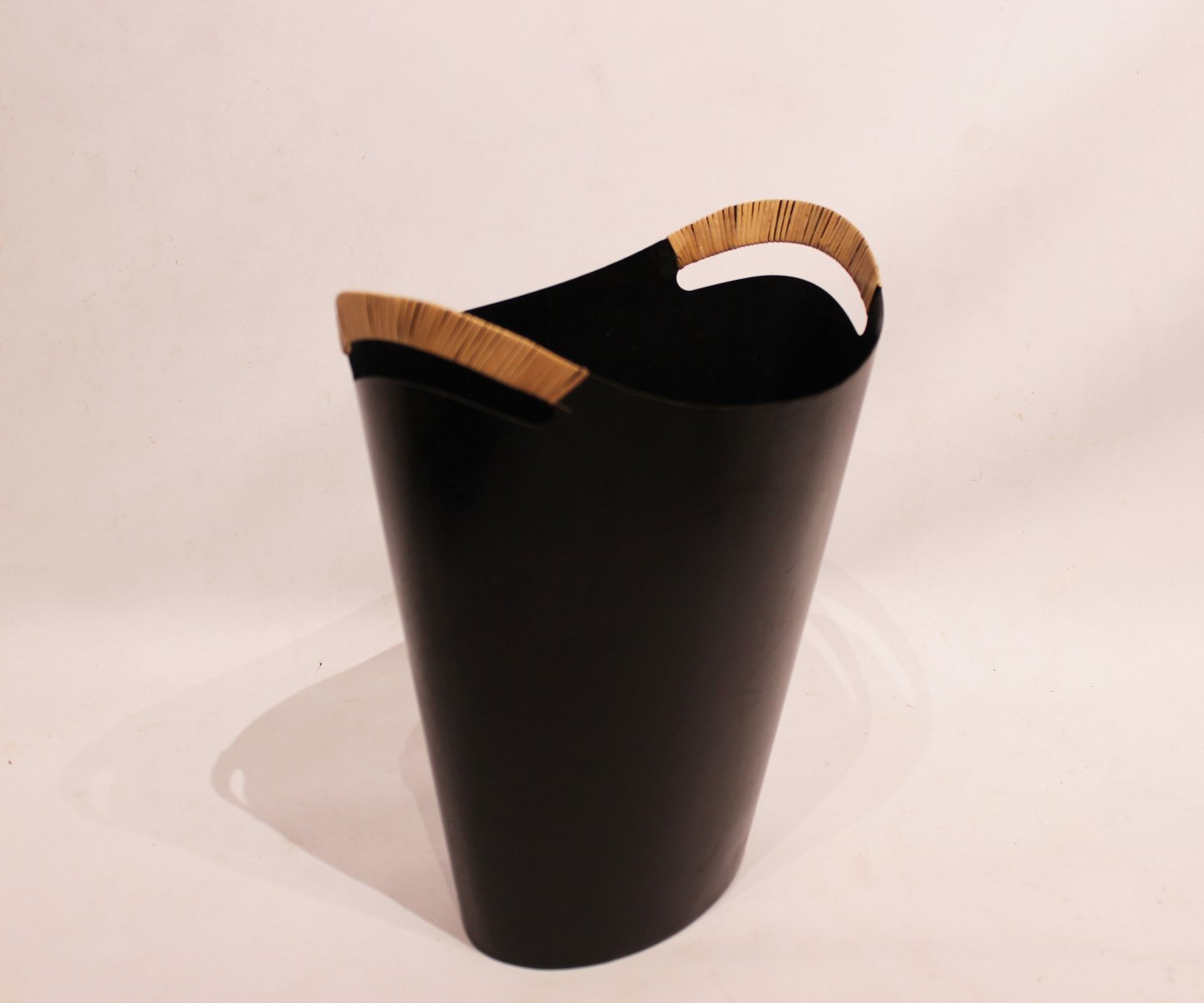 Paper bucket in black metal with papercord by Finn Juhl and Grethe Kornerup-Bang from the 1950s and manufactured by Torben Ørskov.