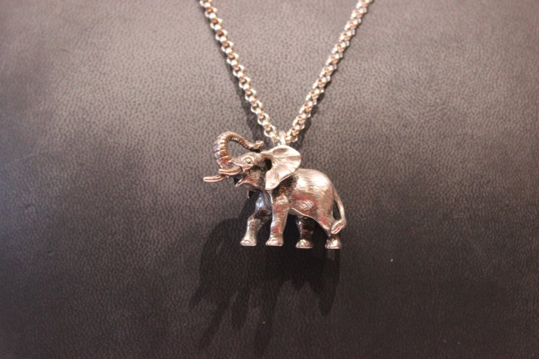Halskæde med vedhæng i form af en elefant af sterling sølv.
