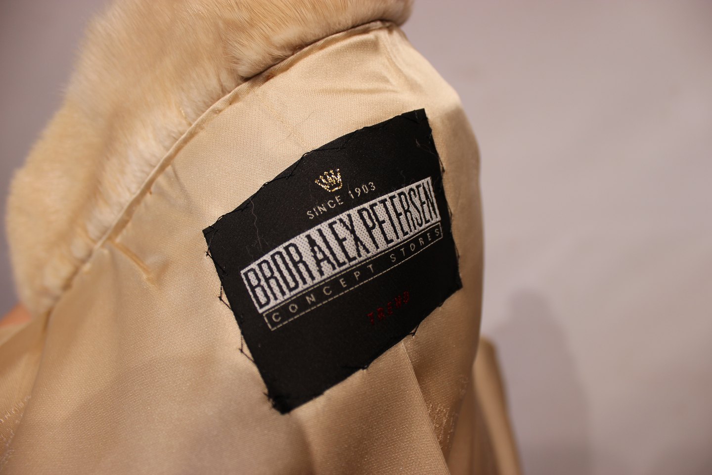 Long fur coat of light mink fur by Brdr. Axel Petersen. The coat is in great vintage condition and can be shortened both in leght and in sleeves, so you have a total of three options. Was bought for 80.000 DKK 15 years ago.