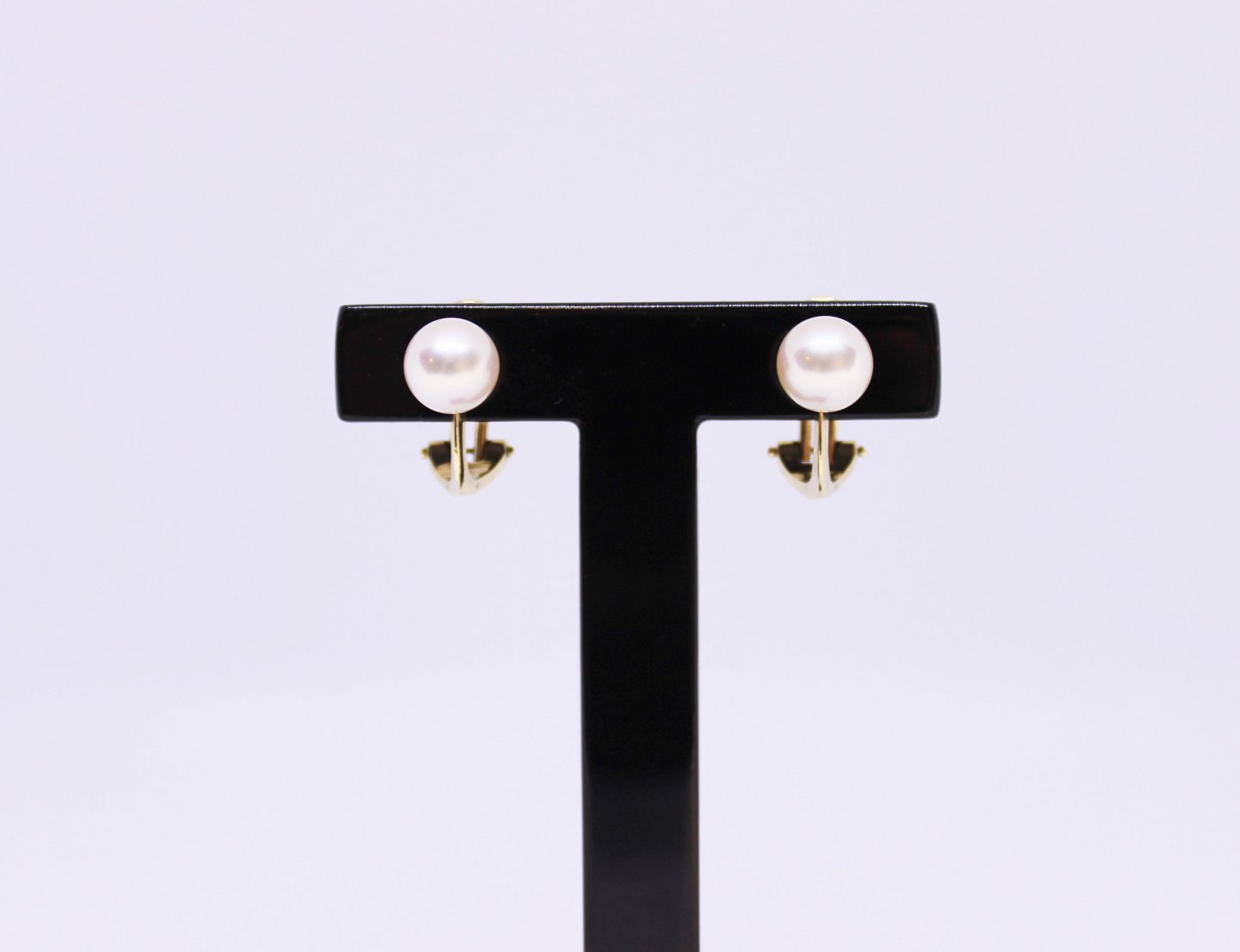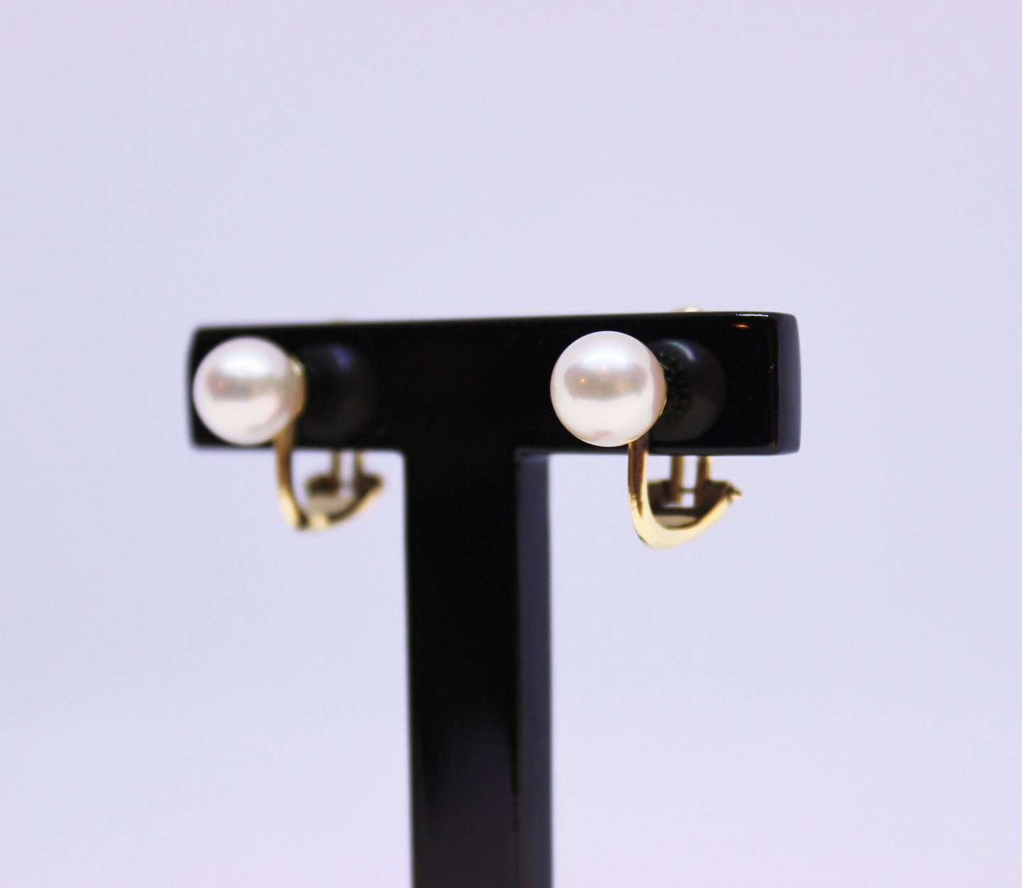 SoldA pair of clip on earrings of 14 ct. gold with cultured pearls, stamped CH. The set is in great vintage condition.