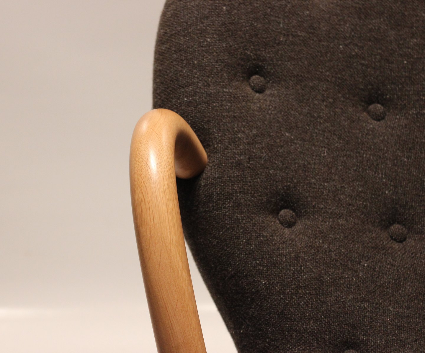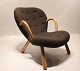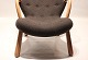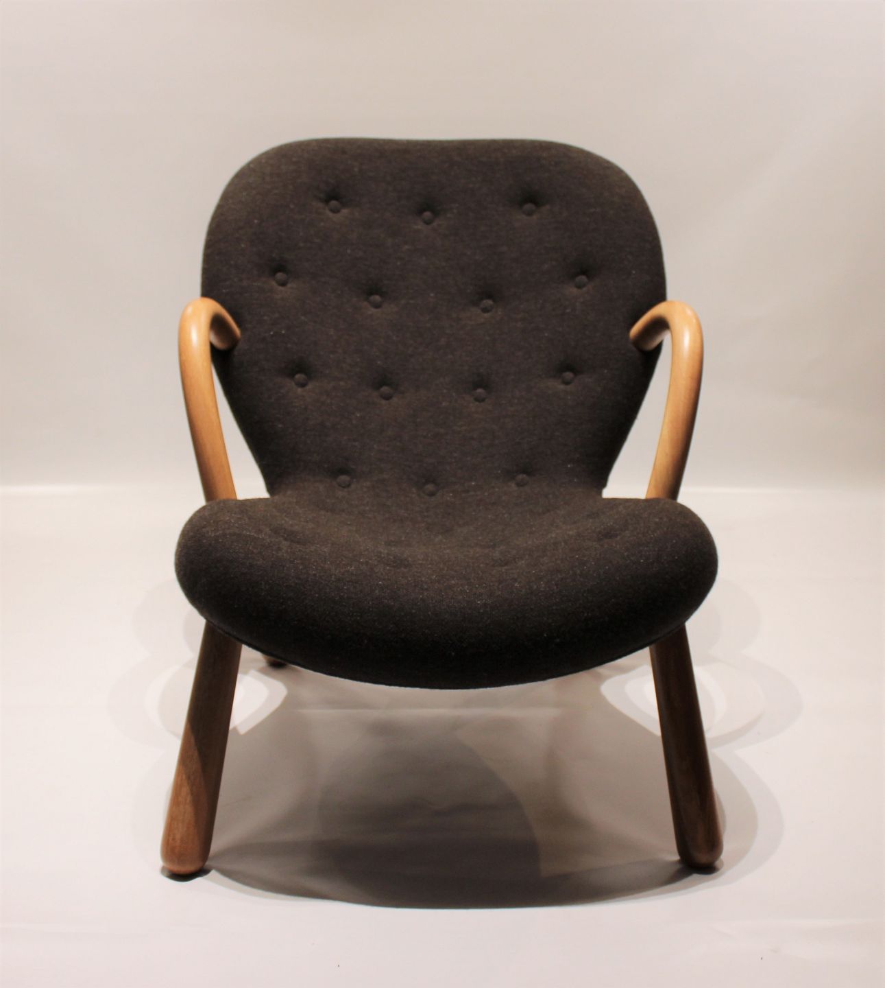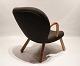Sold"The Clam Chair" originally designed by Phillip Arctander in 1944 and manufactured by Paustian. The chair is upholstered in dark brown Hallingdal and with amrs and legs og oak.
