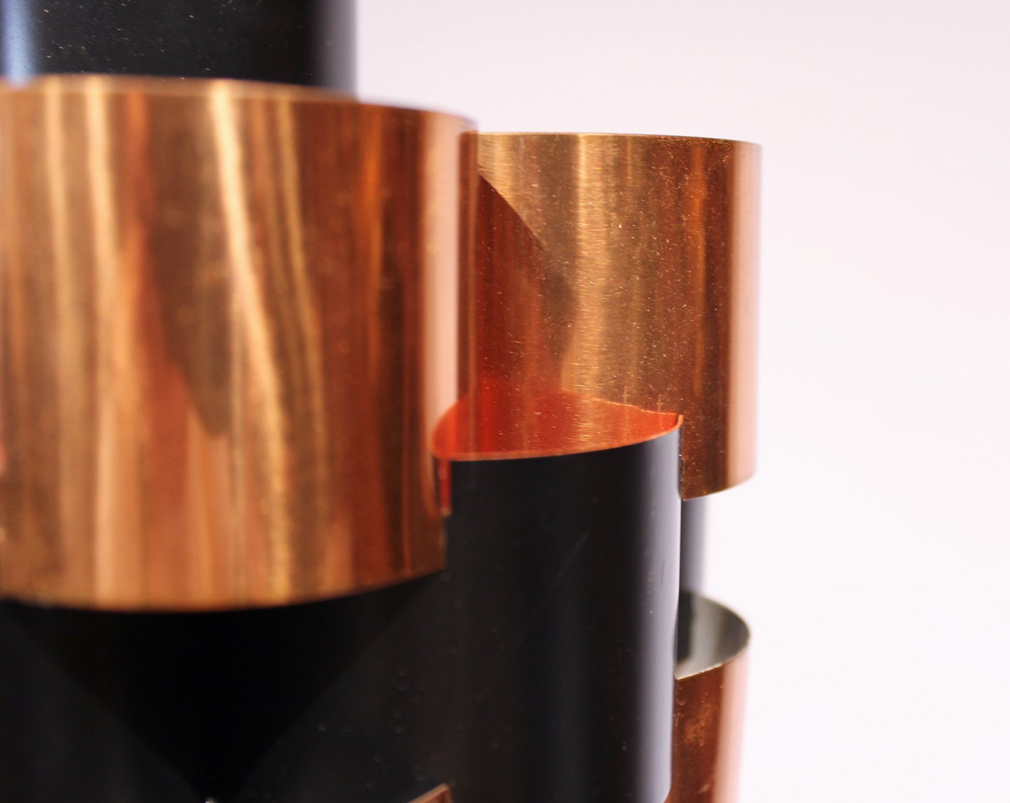 A pair of ceiling pendants in of cobber and black lacquered metal designed by Werner Schou from the 1960s. The lamps are in great vintage condition.