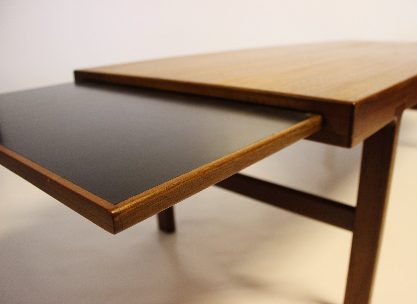 SoldCoffee table in teak with black extension leaf of danish design from the 1960s. The table is in great vintage condition.