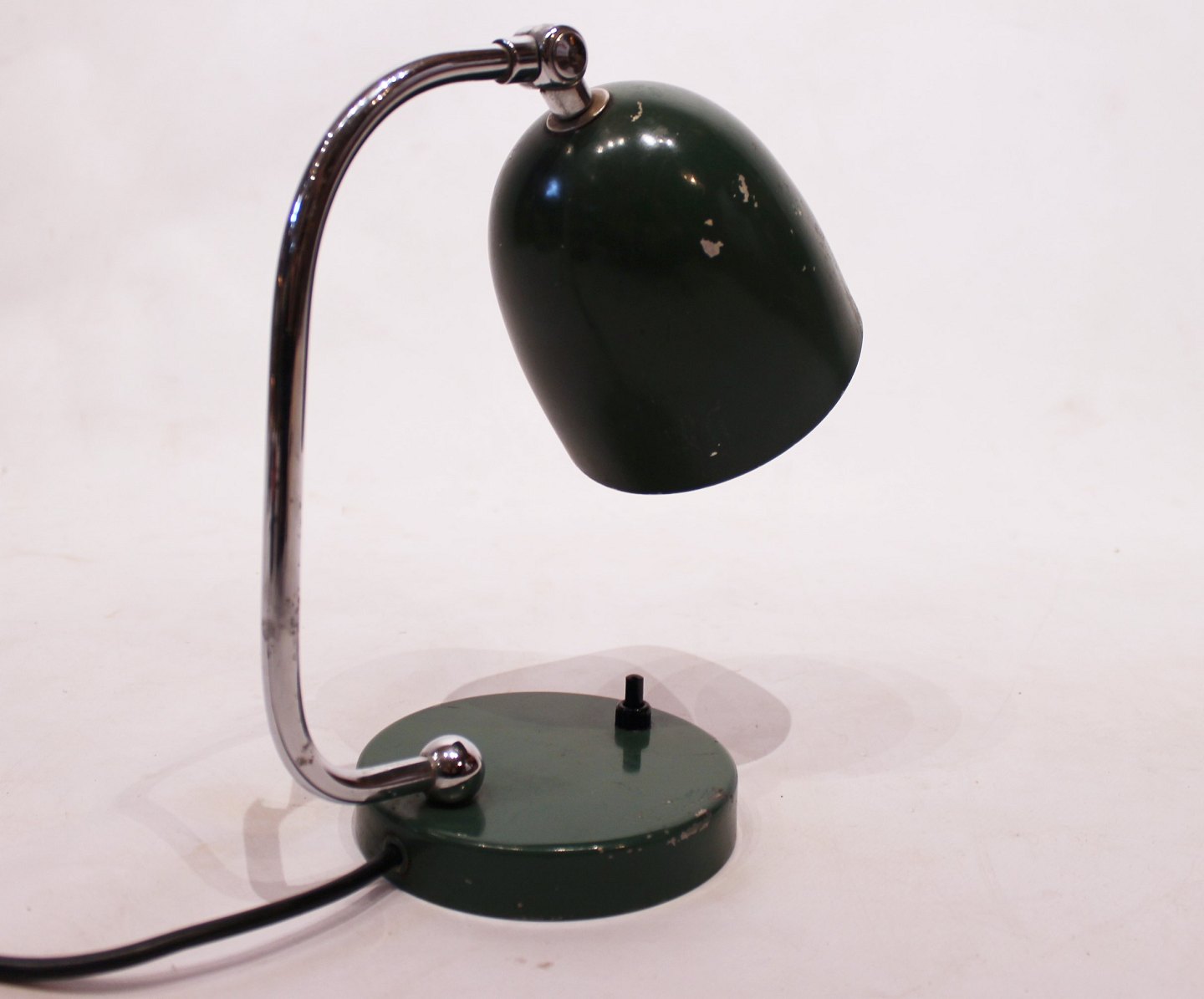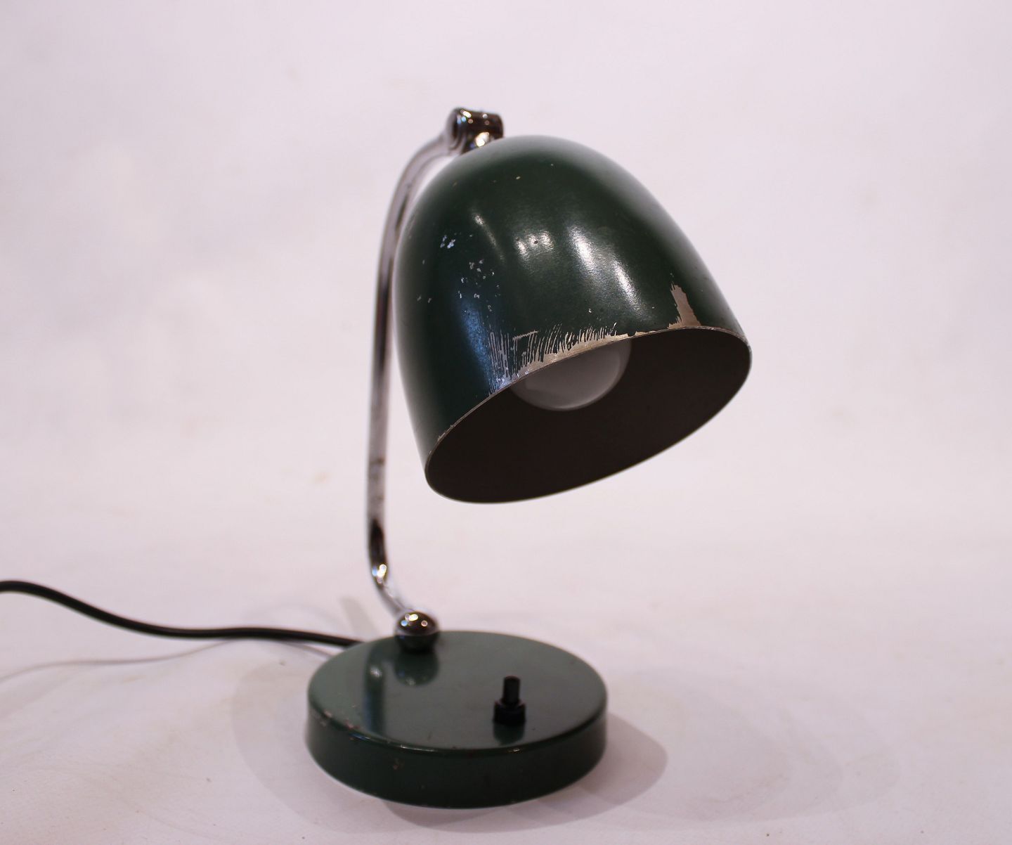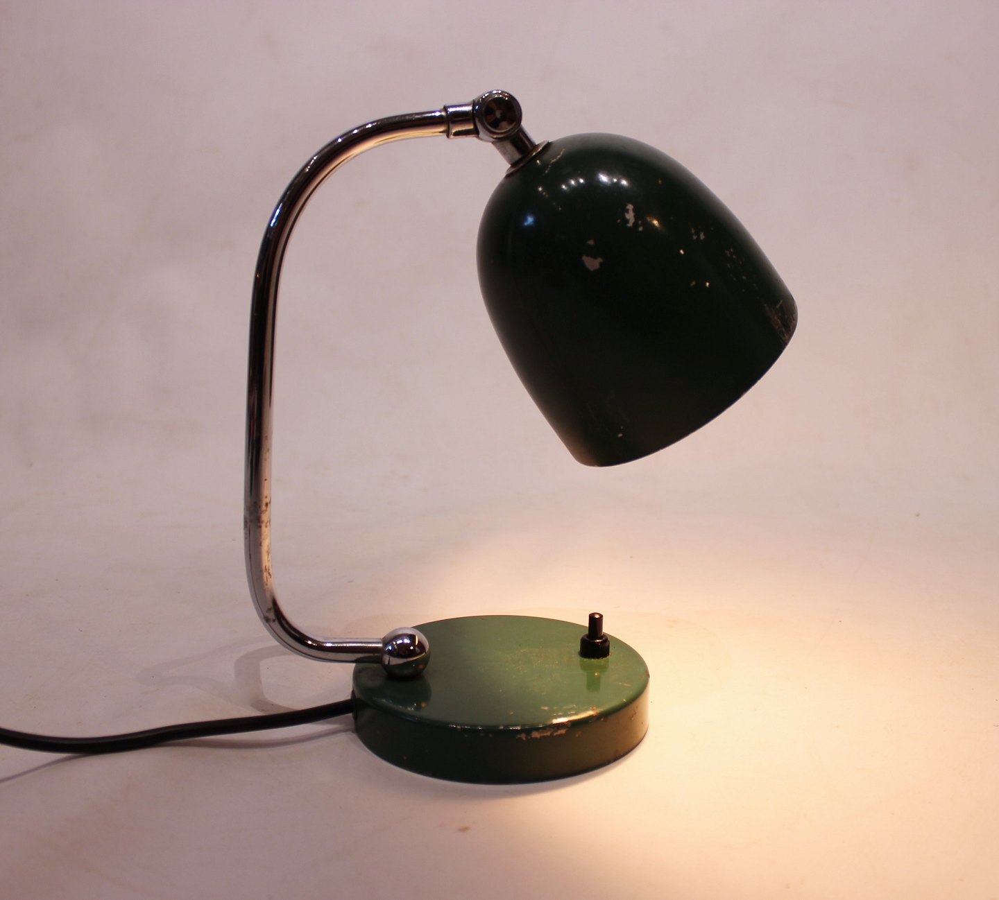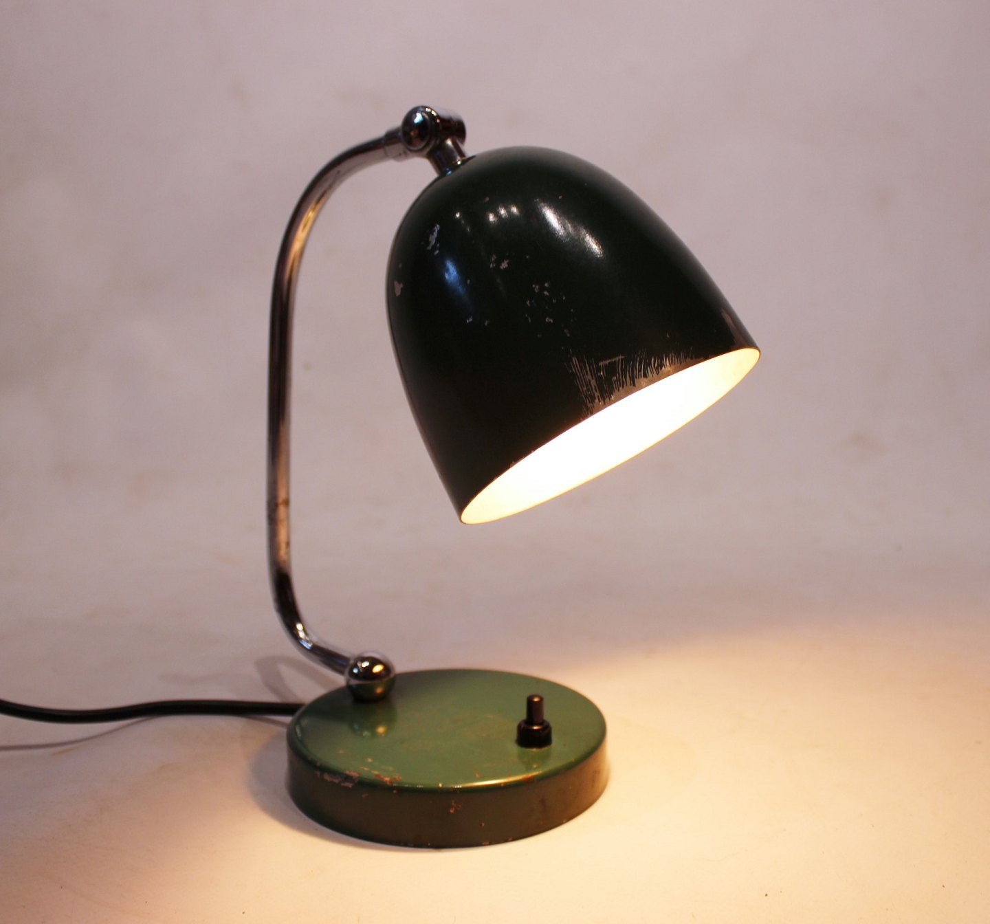SolgtRetro mørkegrøn bordlampe med patina af dansk design fra 1960erne.