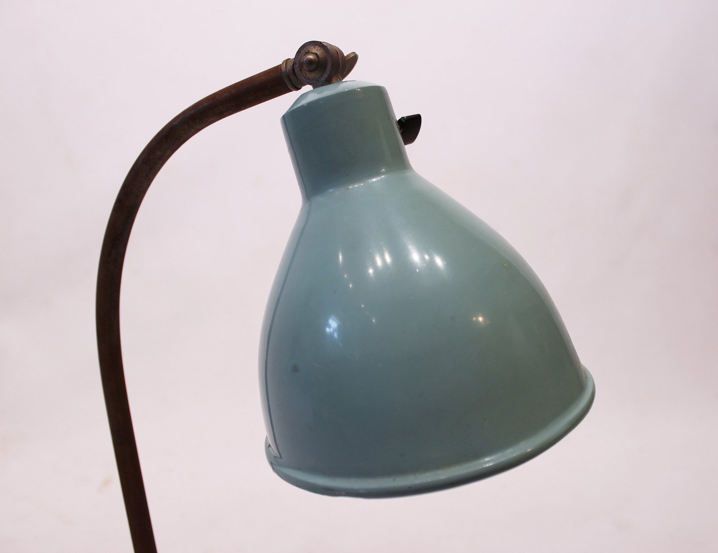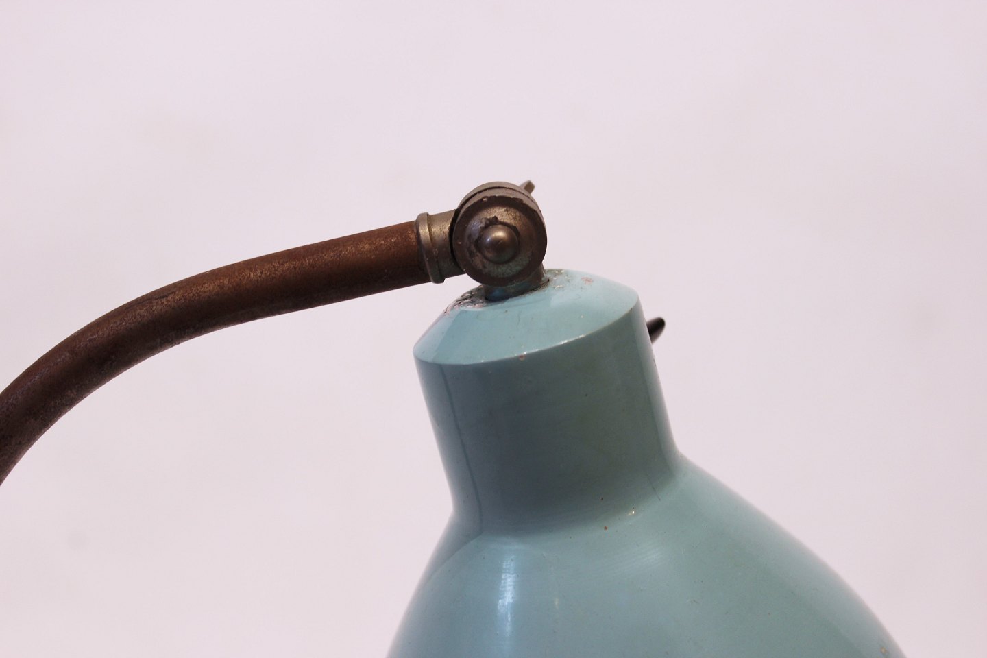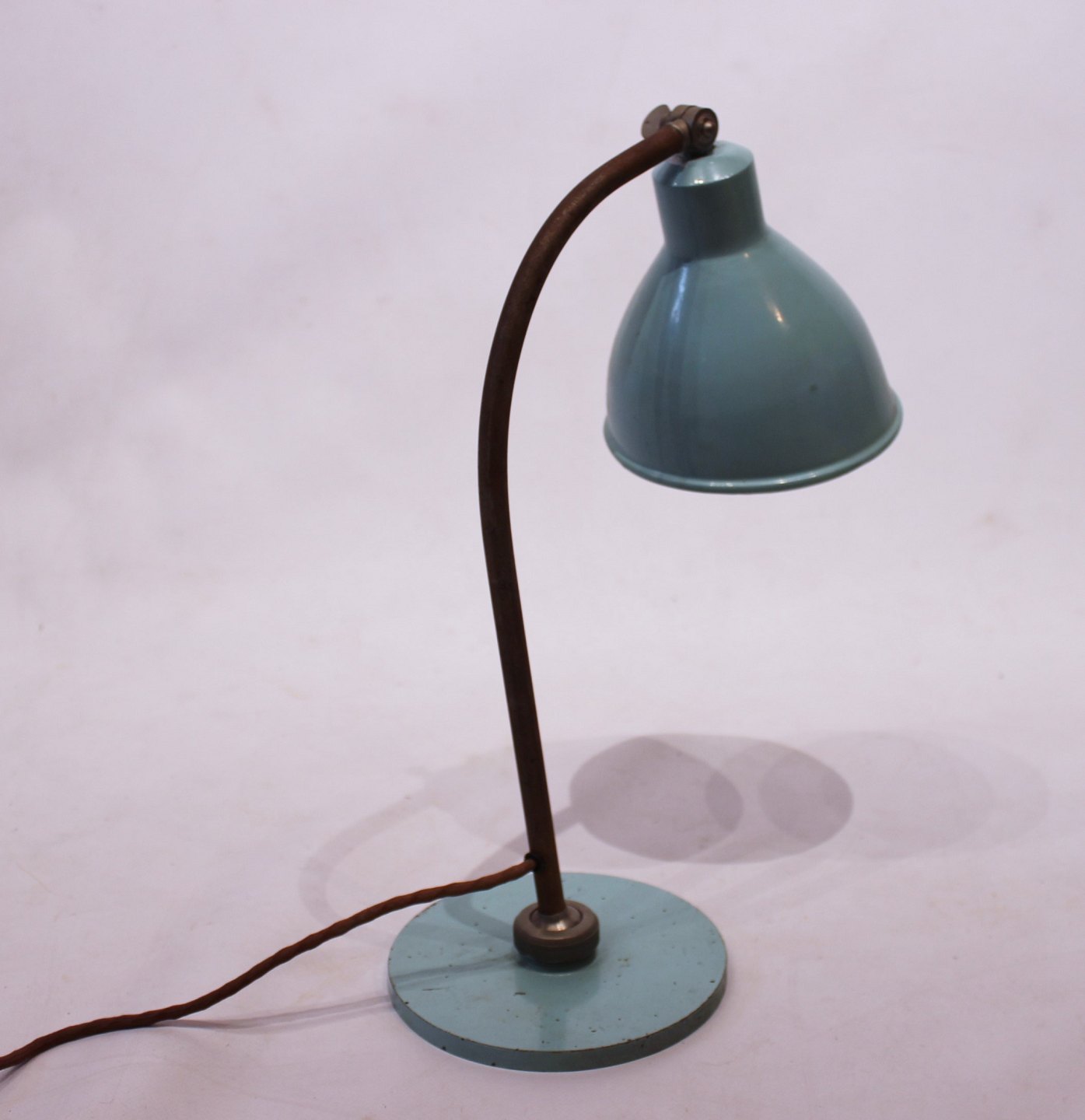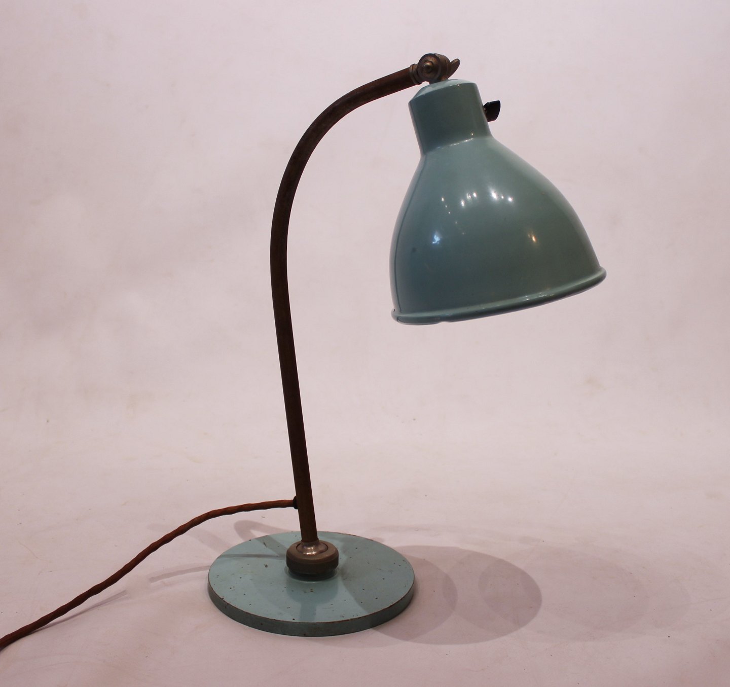 SolgtRetro lyseblå bordlampe af dansk design fra 1960erne. Lampen er i flot brugt stand med patina.