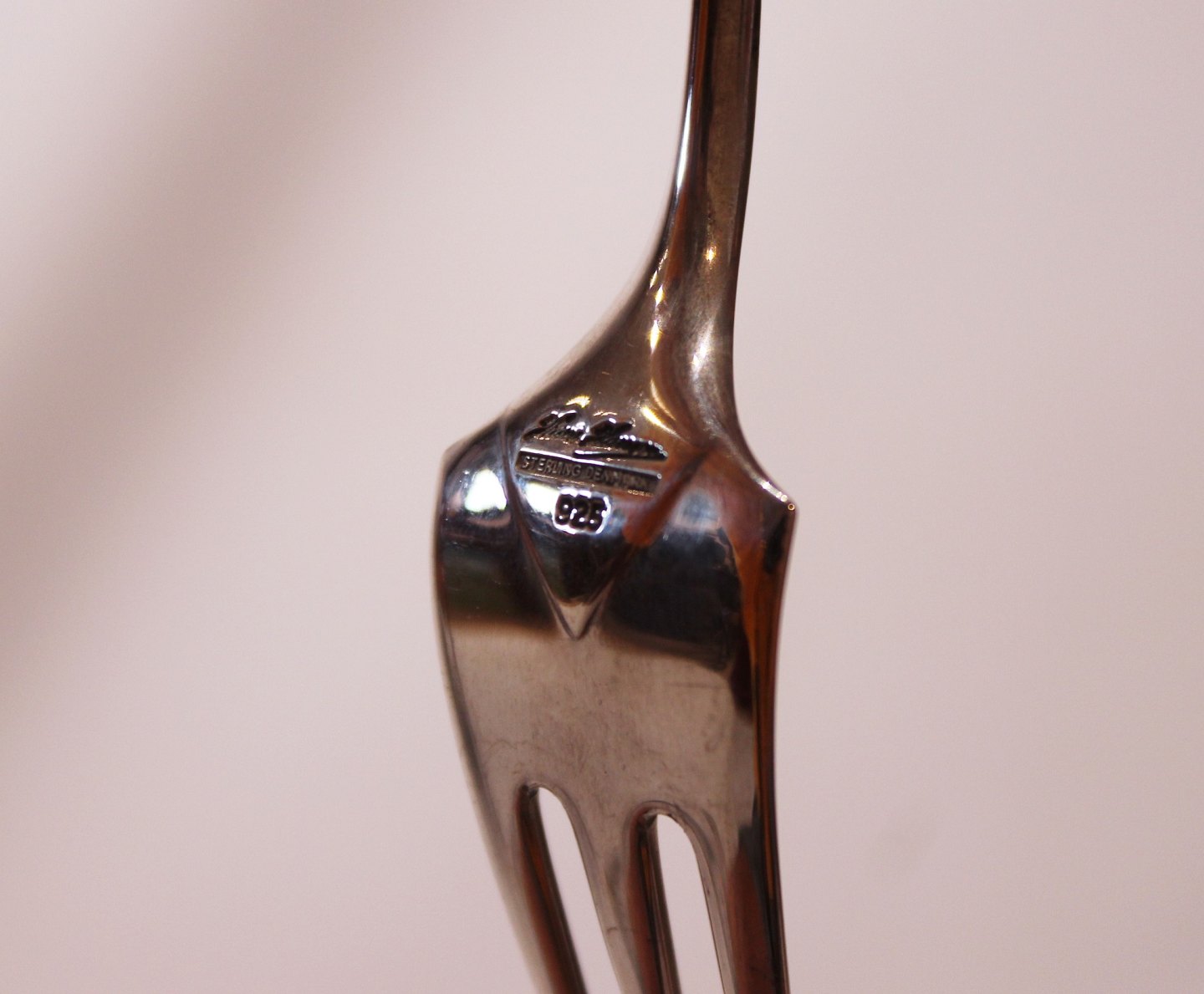 Cake fork (475 DKK) and teaspoon (300 DKK) in Charlotte by Hans Hansen. Ask for number in stock.