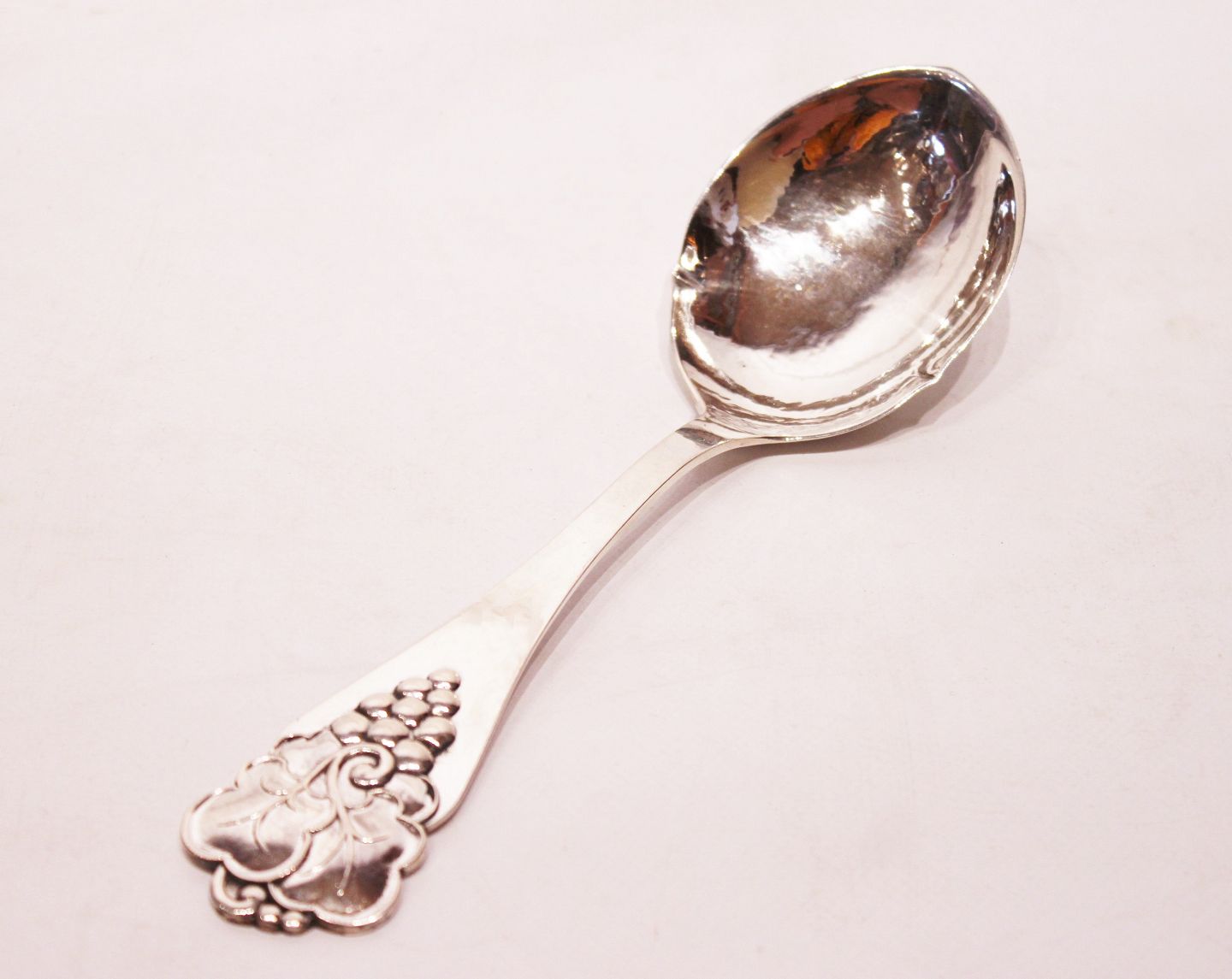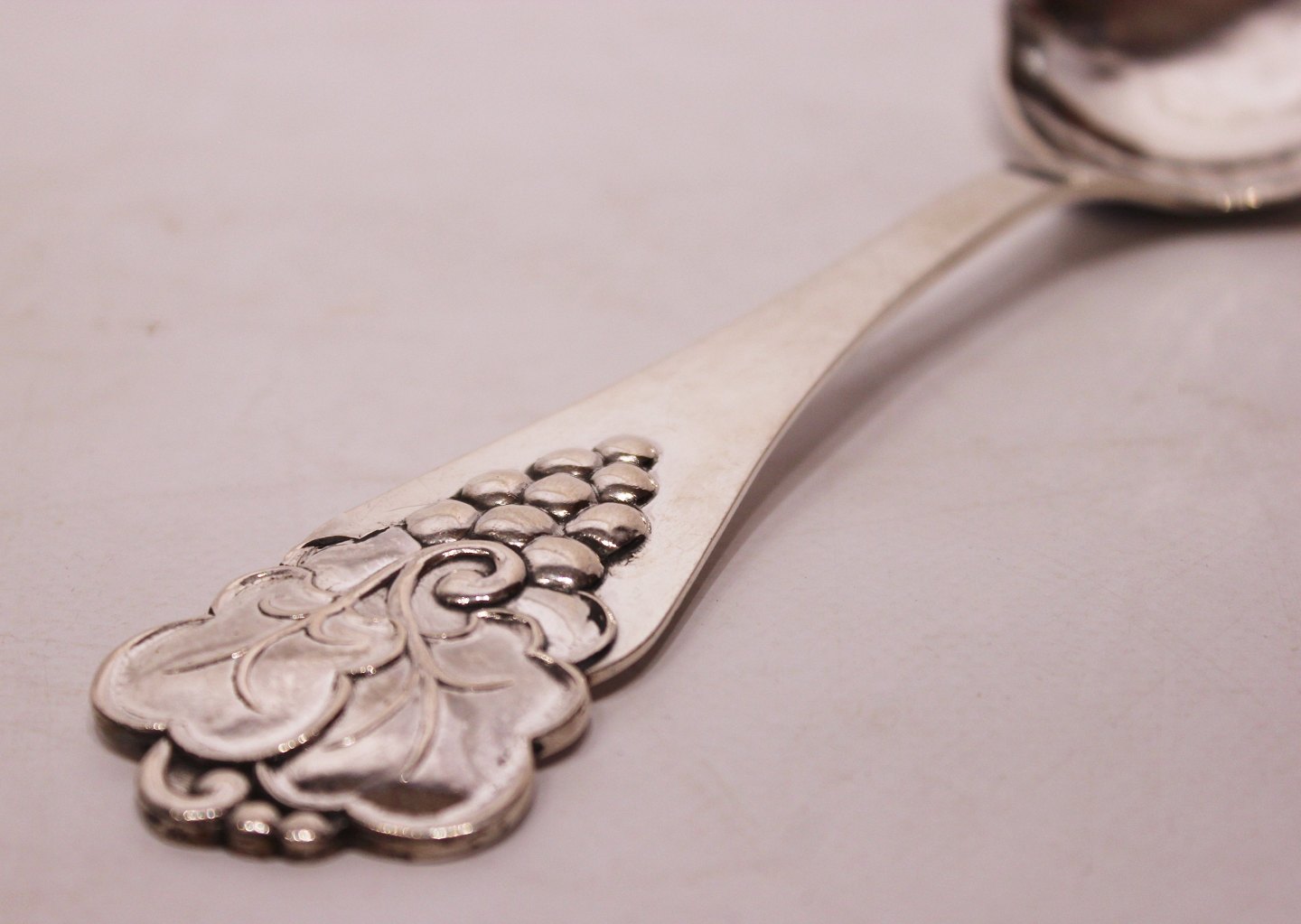 Server decorated with grapevine of hammered hallmarked silver.