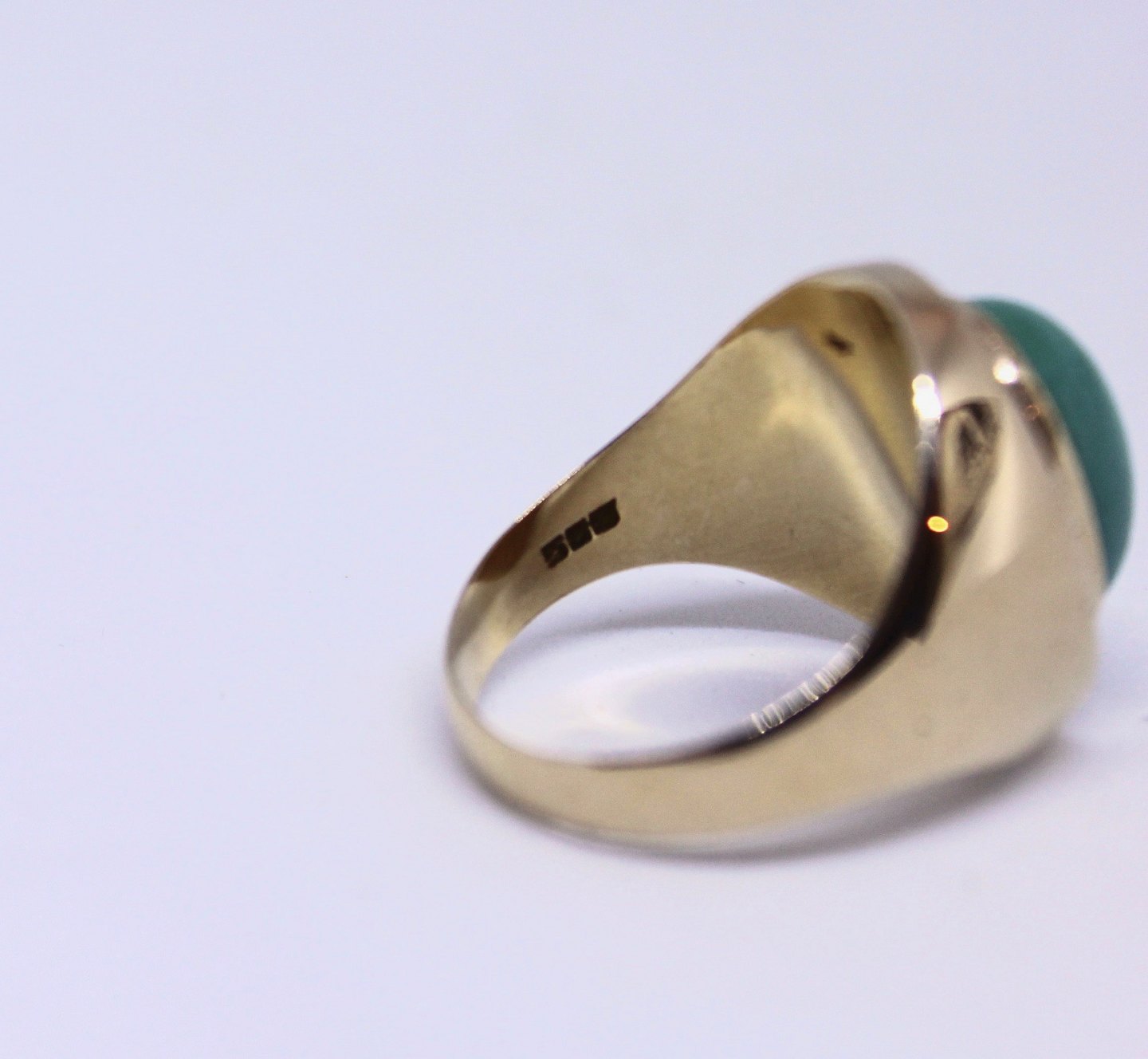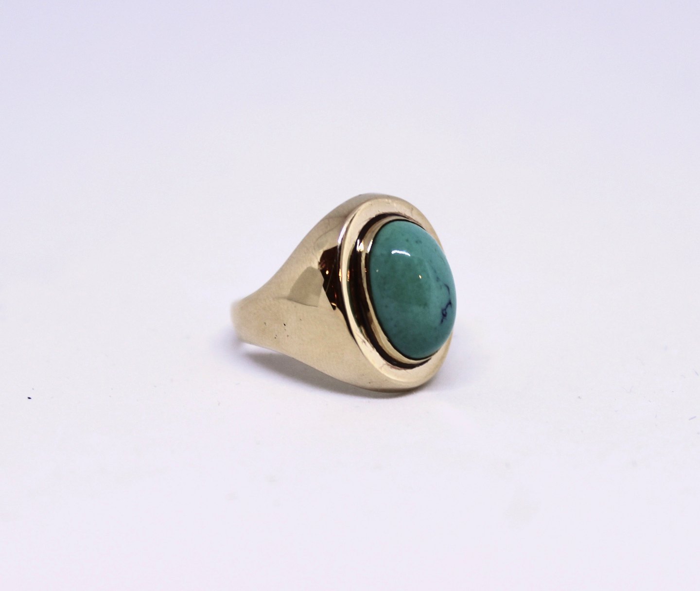 SolgtRing af 14 karat guld med turkis ædelsten og stemplet ESC.