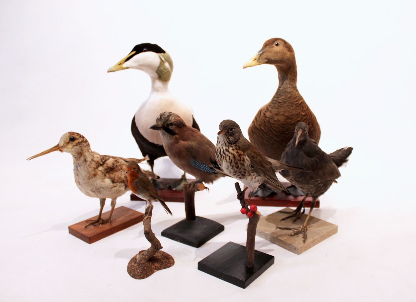 SoldDifferent stuffed danish birds; mallard - SOLD, eider, jay, woodcock, song thrush and robin - SOLD. All are in great vintage condtion.