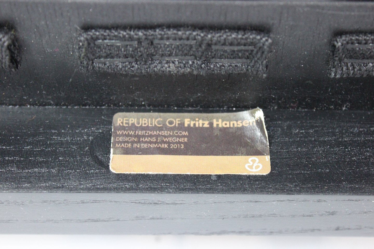 SoldA pair of China chairs of black colored ash and with cushions of cognac colored leather designed by Hans J. Wegner in 1944 and manufactured by Fritz Hansen in 2013. The chairs are in great used condition. Will be sold seperately.