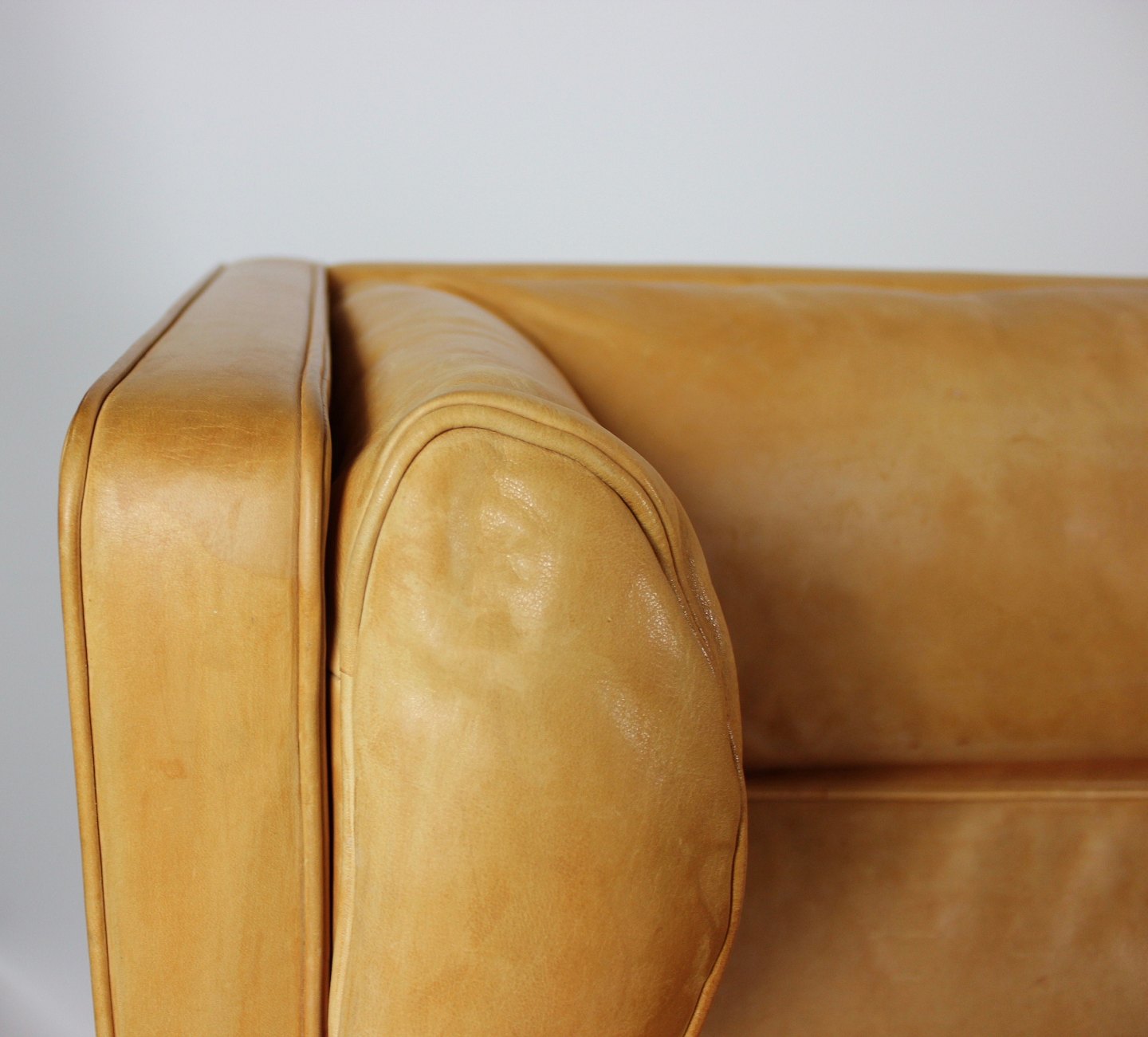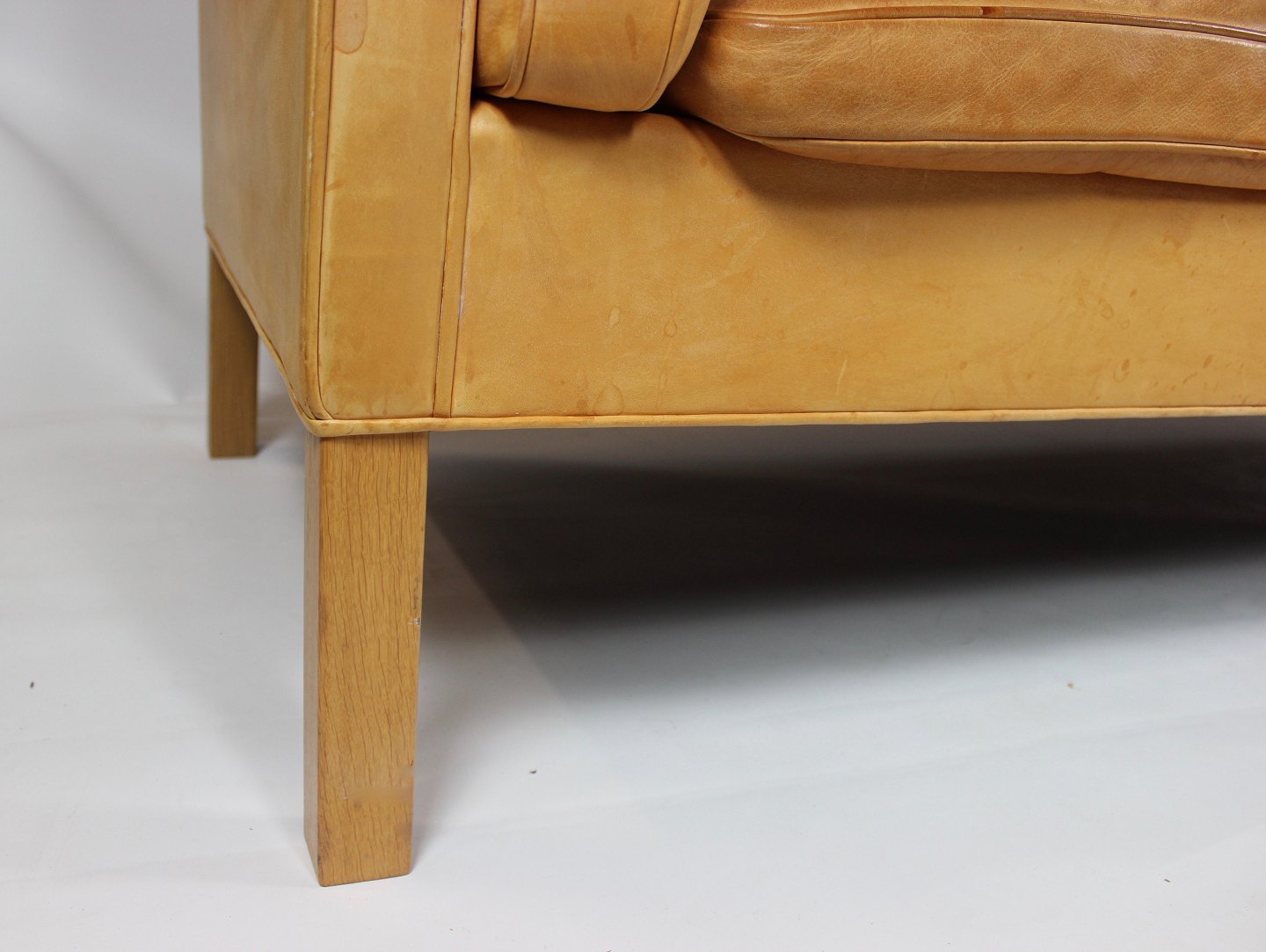 SoldThree seater sofa, model Kupe, designed by Børge Mogensen and upholstered with light cognac colored leather. The sofa is in great vintage condition.