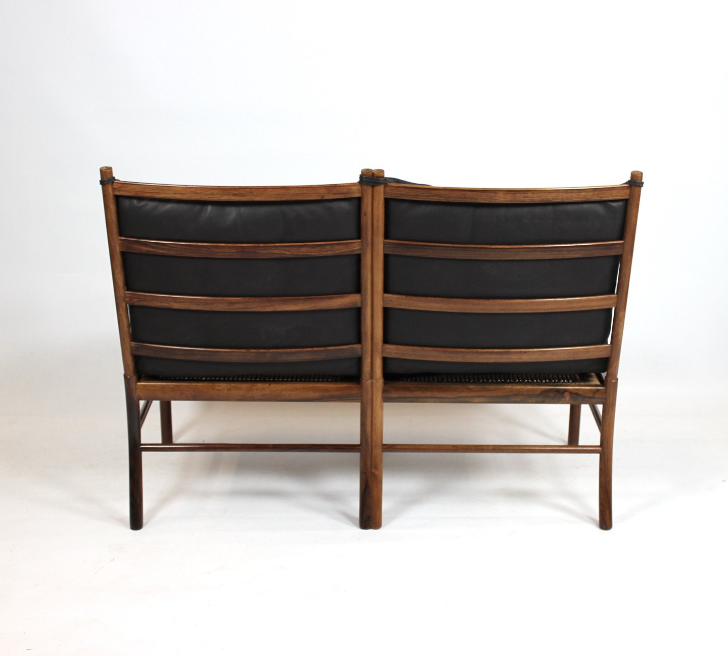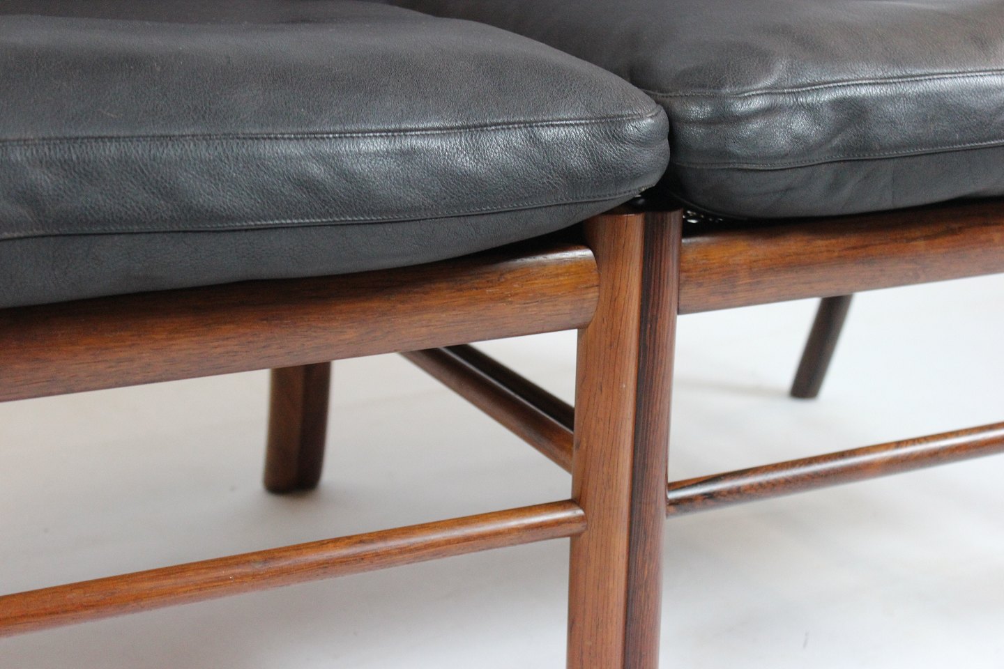 Sofaens ramme er fremstillet af smukt palisandertræ, der giver en varm og eksklusiv følelse til enhver indretning. De sorte læderhynder tilføjer et strejf af luksus og komfort til sofaen, samtidig med at de fremhæver dens klassiske og sofistikerede udseende.