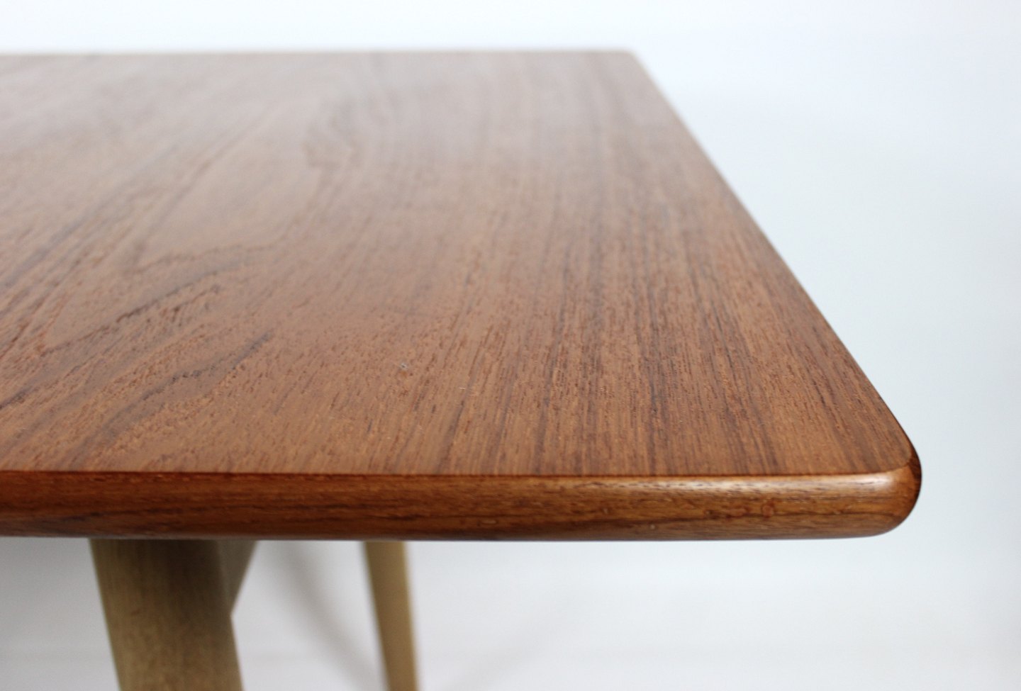 SoldDining table in teak and legs of aok, model AT-312, designed by Hans J. Wegner and manufactured by Andreas Tuck in the 1960s. The table is in great vintage condition and comes with two extension plates.