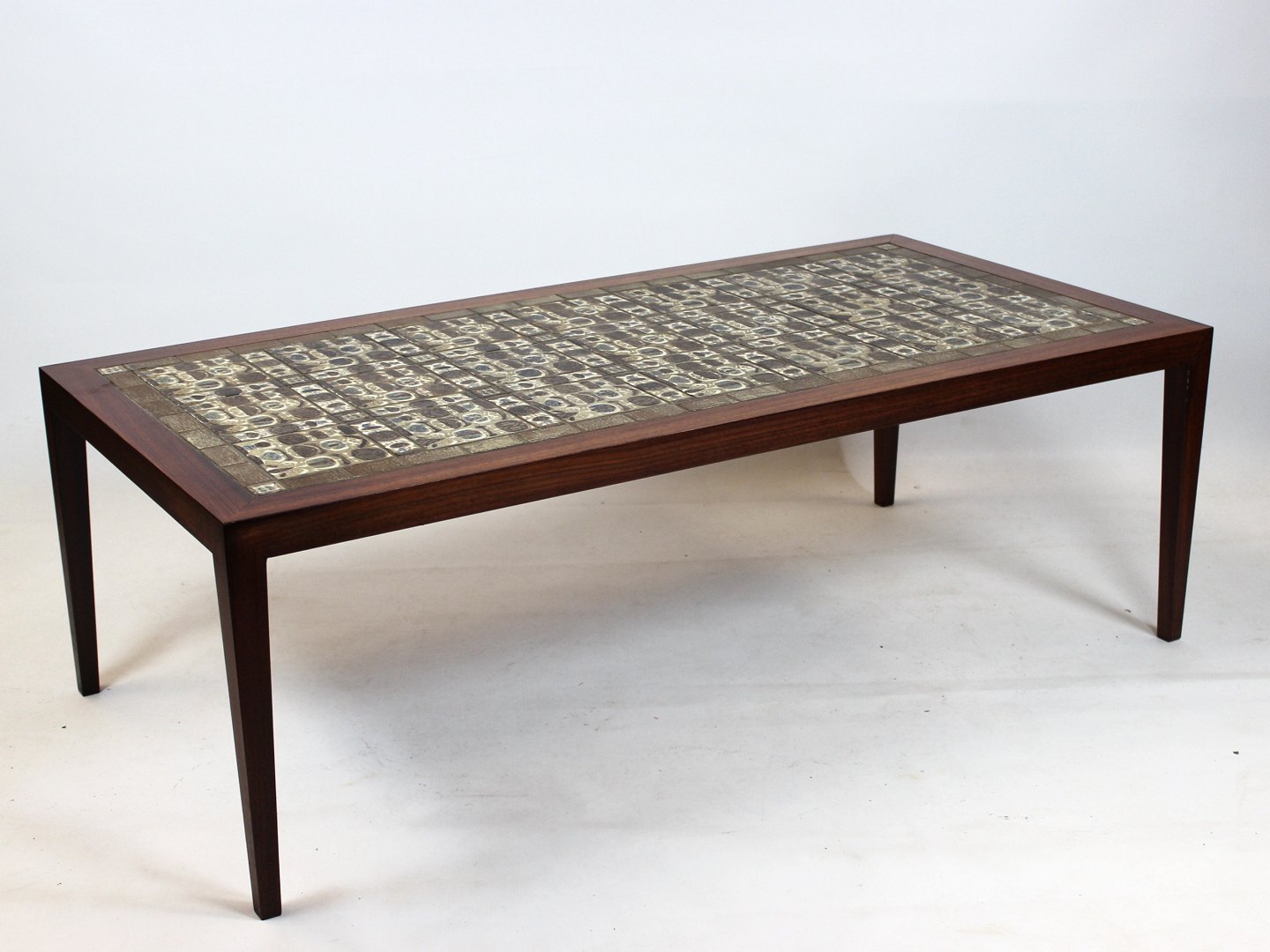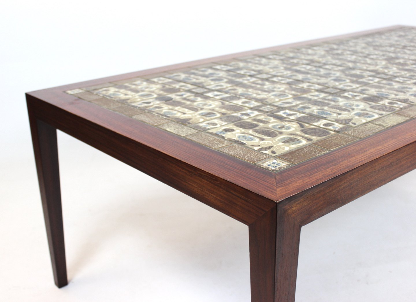 Coffee table of rosewood and brown tiles from Royal Copenhagen, by Severin Hansen for Haslev Furniture Factory from the 1960s.