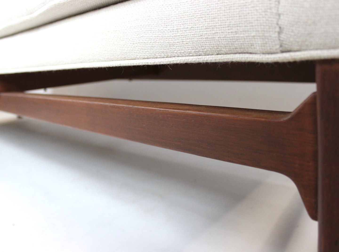 Mayor sofa, model AJ5, designed by Arne Jacobsen and Flemming Lassen, and manufactured by &Tradition. The sofa is upholstered with light Hallingdal fabric and legs are of wood.