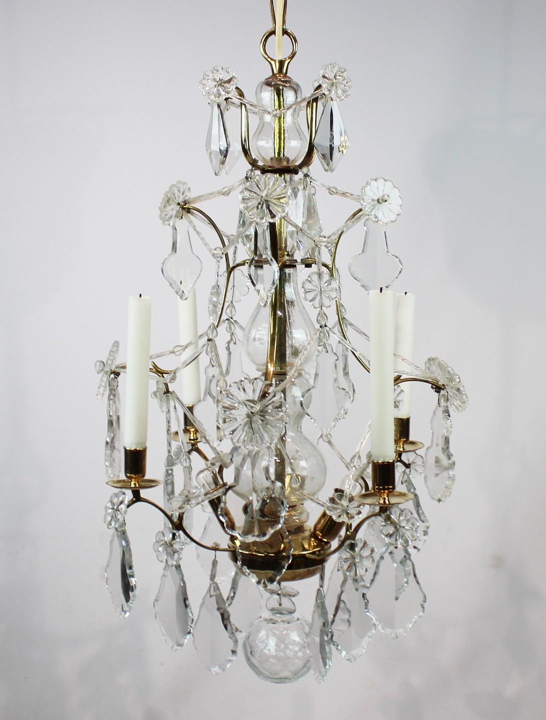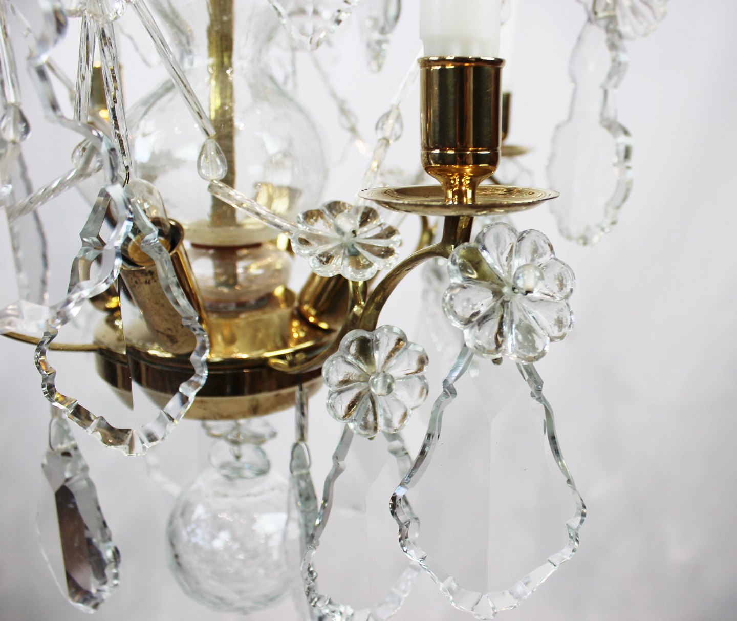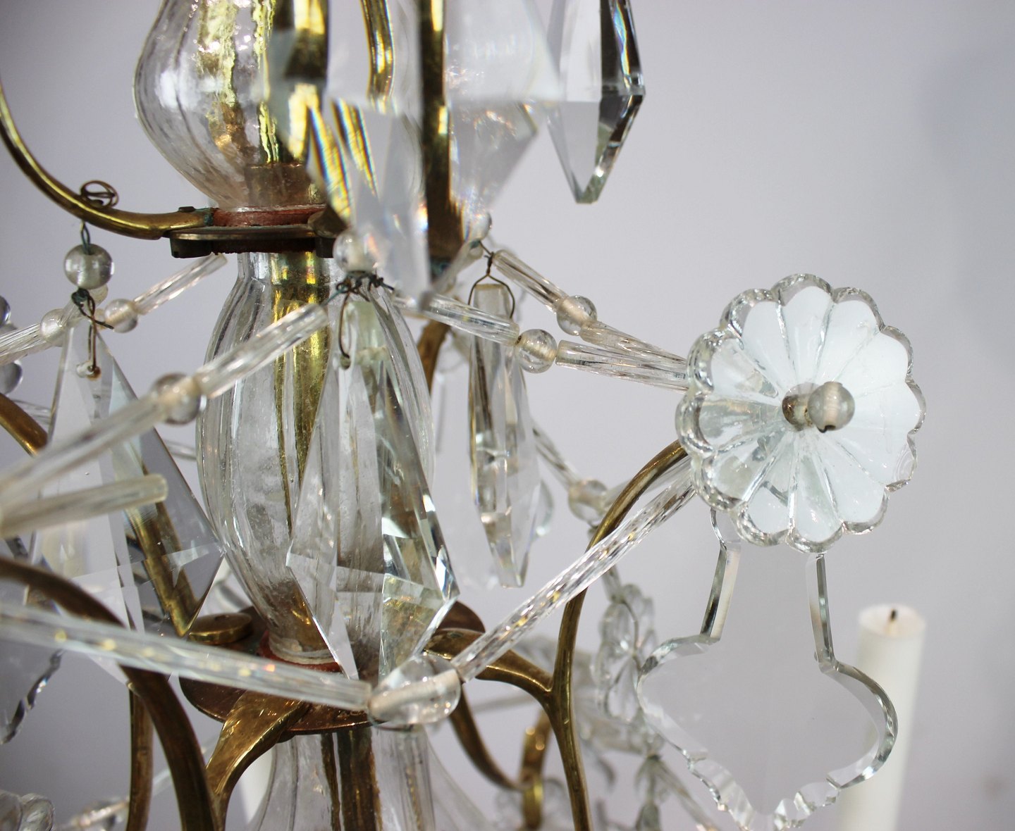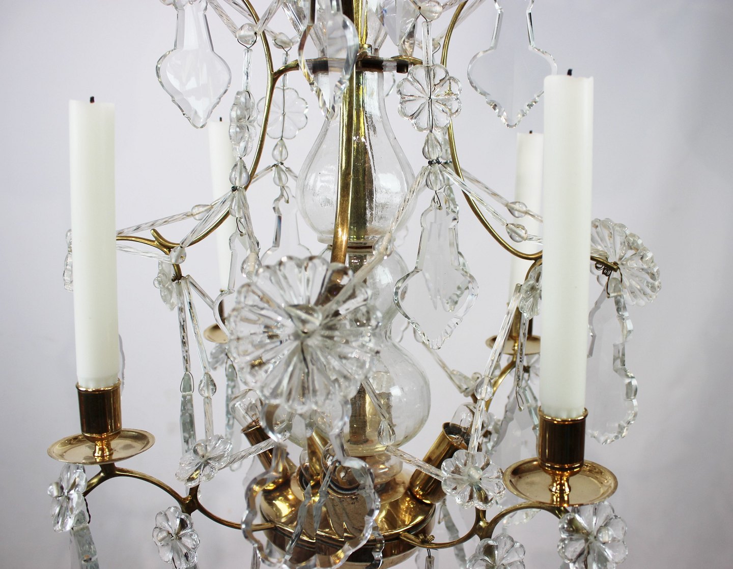 SoldChandelier of brass and polished prisms from France around the 1920s. The chandelier is in great antique condition.