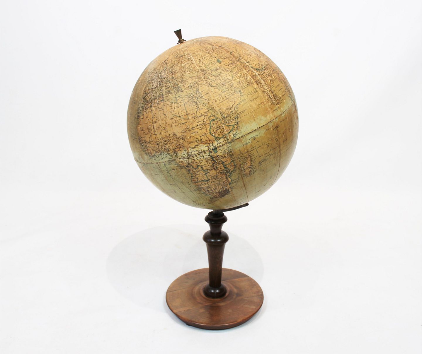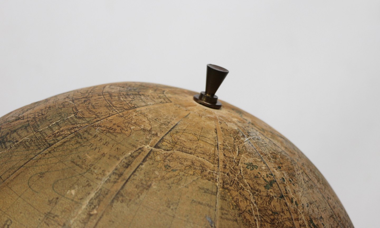 SolgtAntik globus med stel af poleret træ og messing fra 1940erne. Globussen er i flot antik stand.
