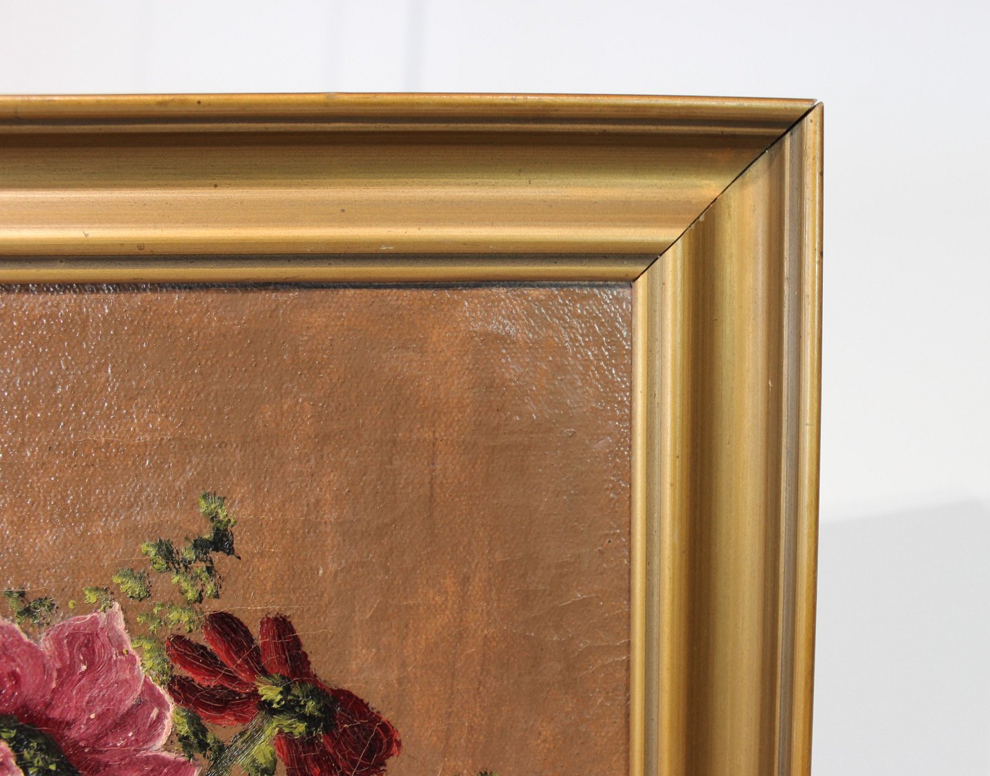 Painting with floral motif and gilded frame signed Clara Cleveni. The painting is in great condition.