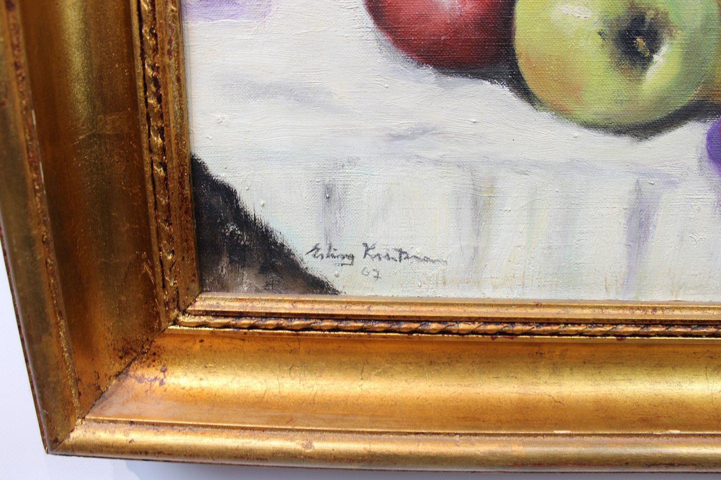 Oil painting with motif of different fruit signed Erling Kristensen 1967.