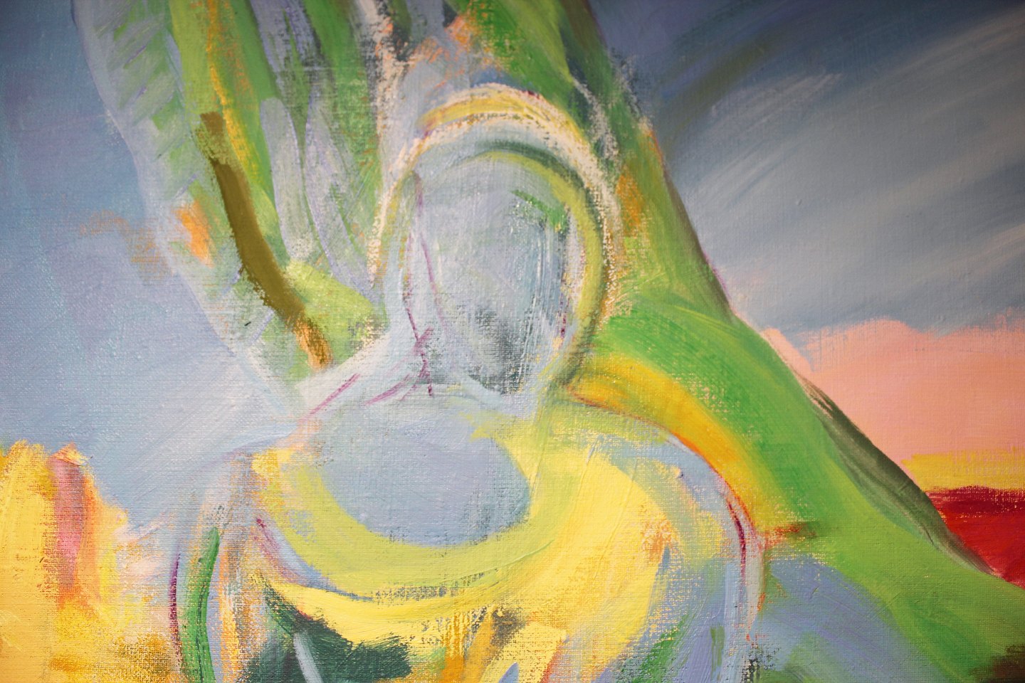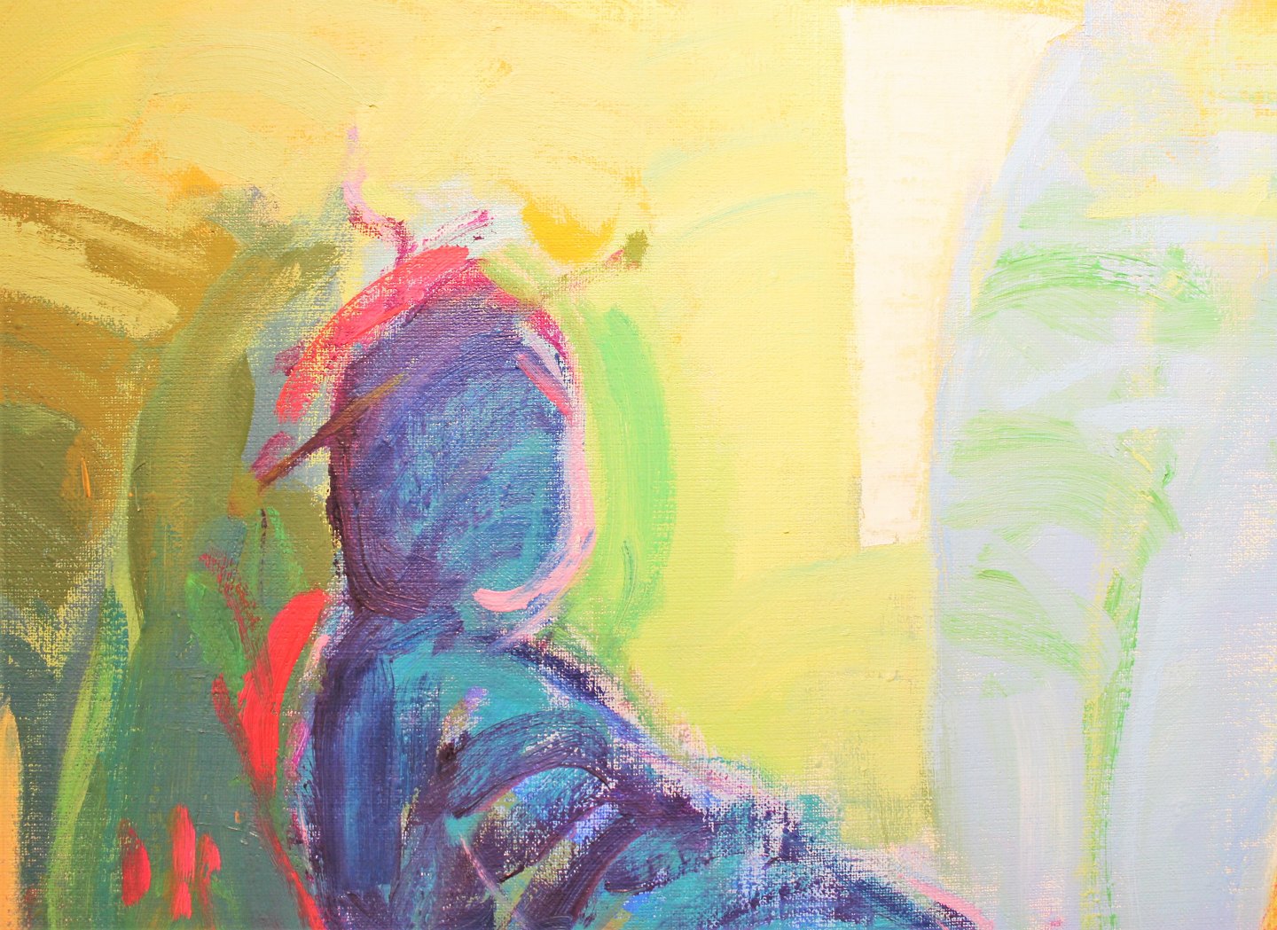 Oil painting on canvas in strong bright colors by the danish artist Åse Højer, b. 1952. The painting is with a dark frame and is in great condition.