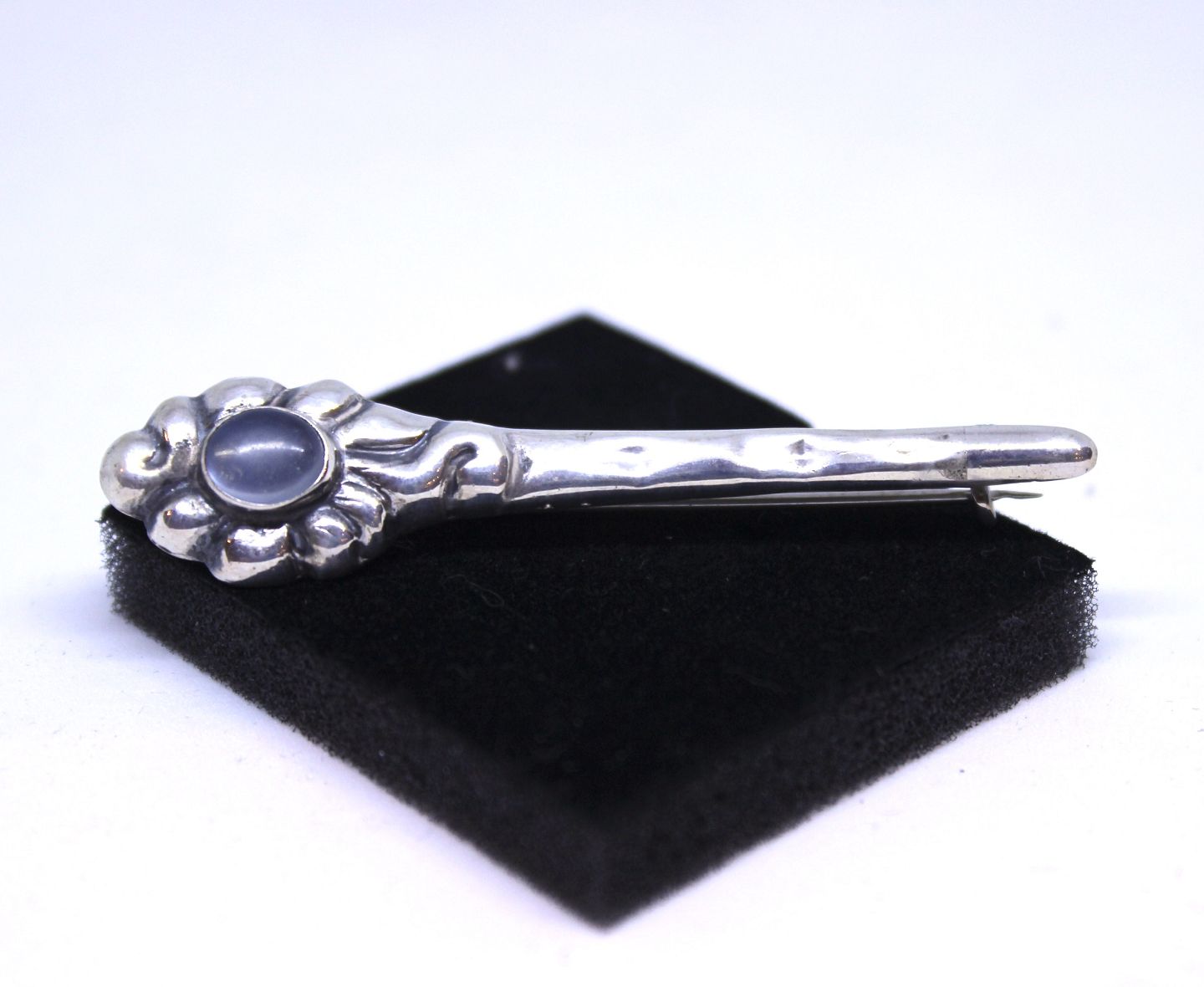 Broche med månesten og af 925 Sterling silver stemple VM.