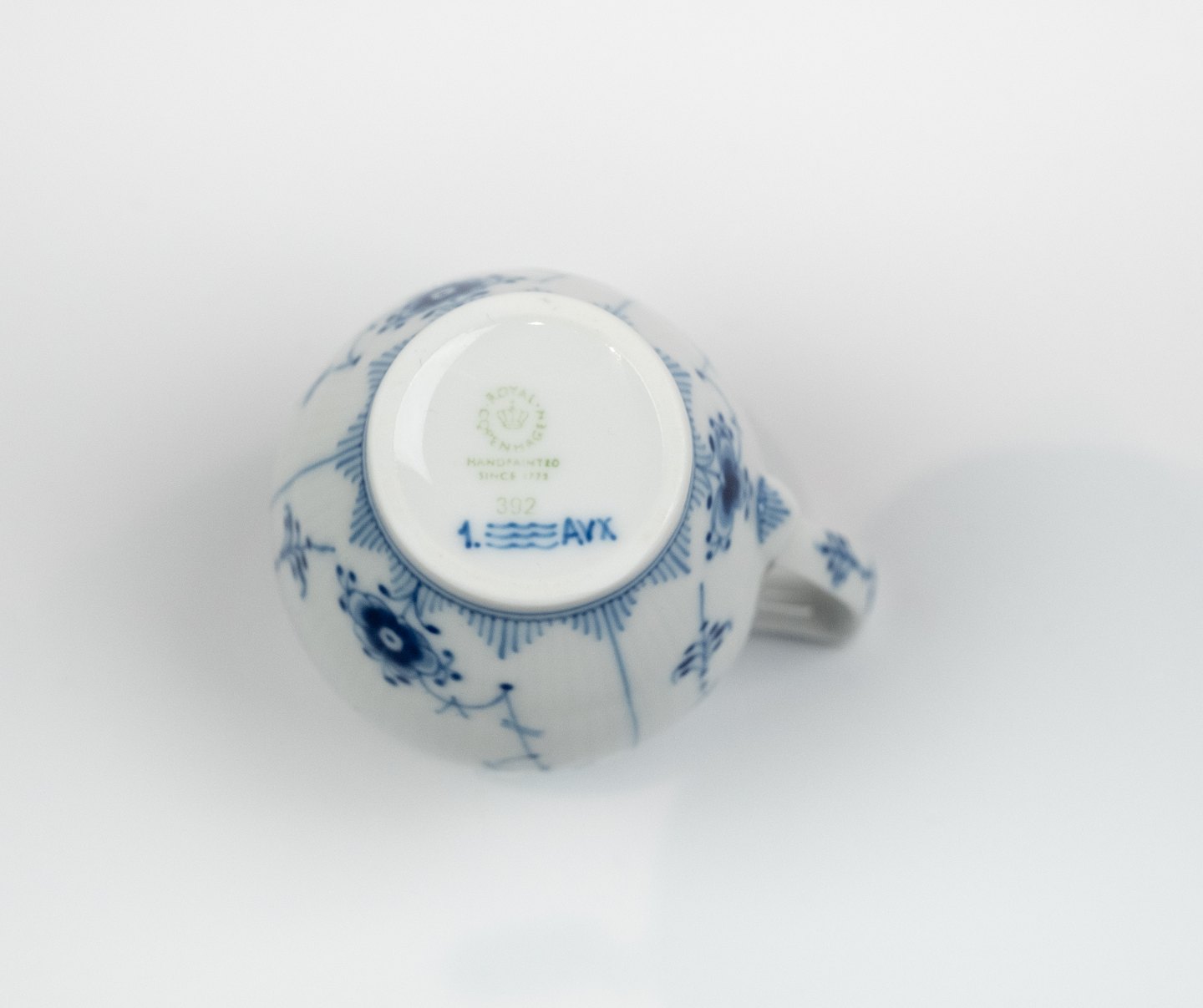 SolgtKgl. musselmalet riflet flødekande, nr.: 202, af Royal Copenhagen.