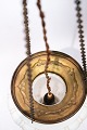 Antik Ampel med hvidt opal glas med messing kant og ophæng, fra omkring år 1860. Pendlen er i flot antik stand.